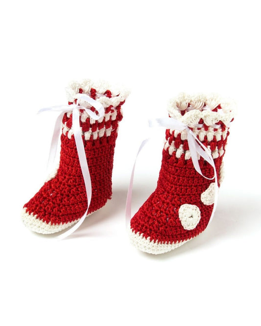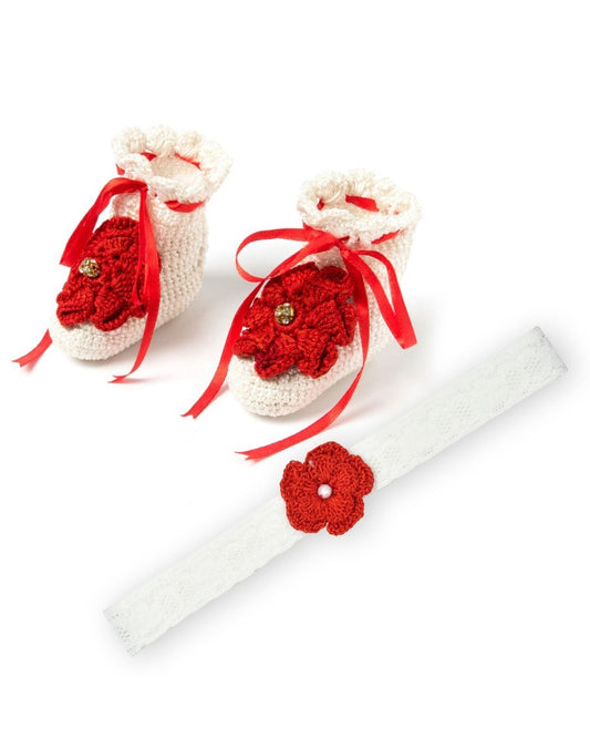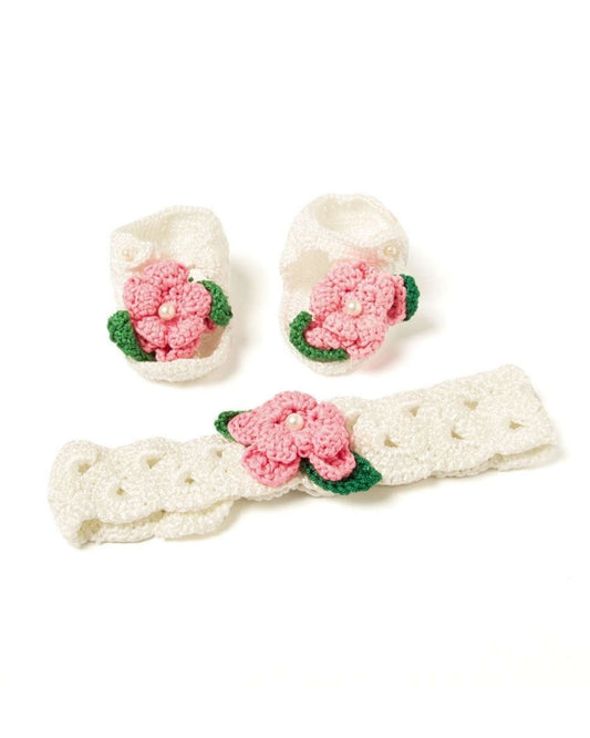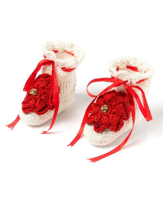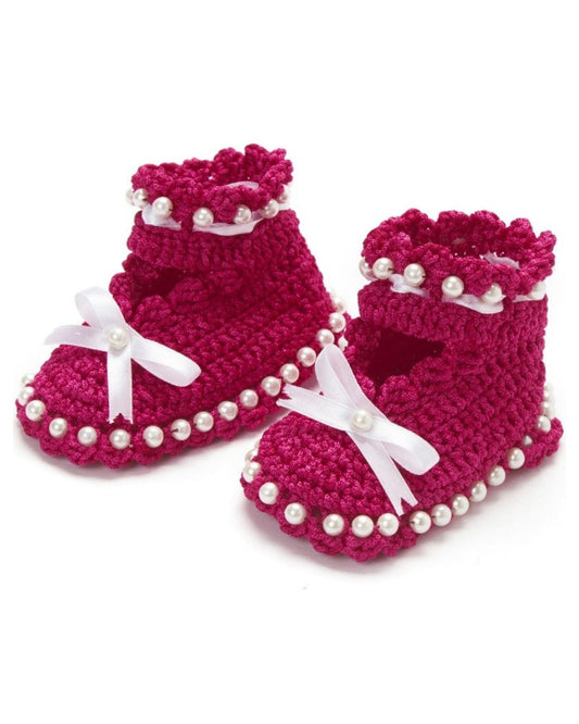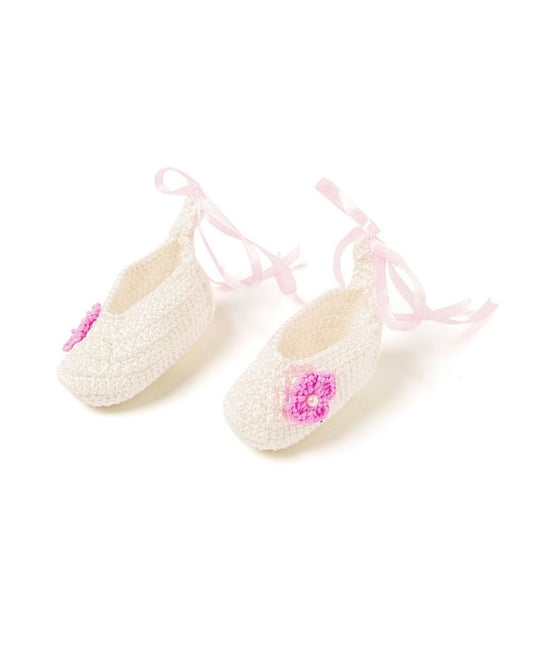White & Pink Handmade Crochet Baby Infant Girl Booties