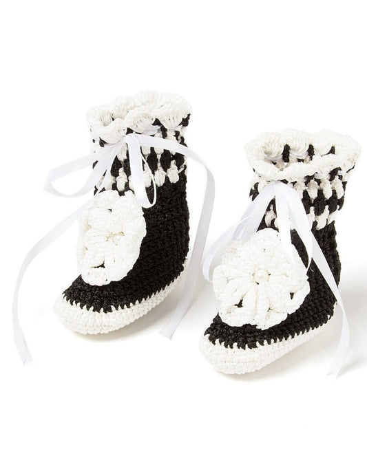 Black & White Handmade Crochet Baby Infant Girl Booties