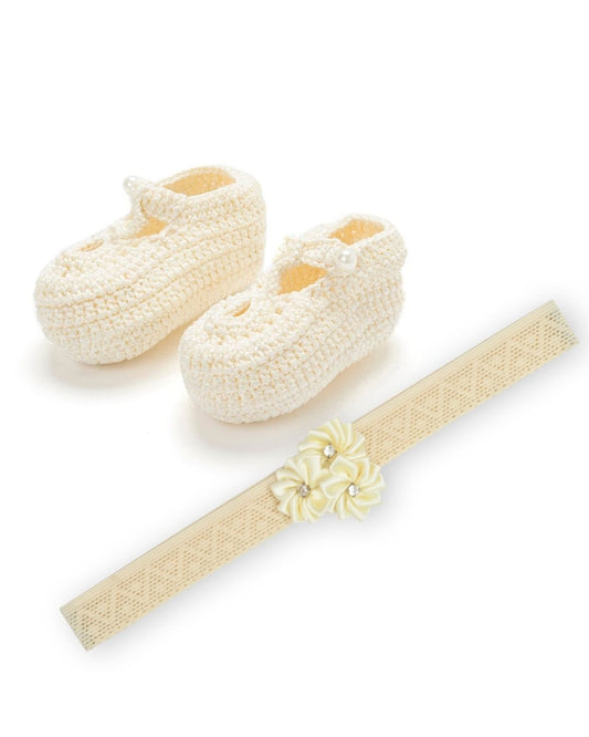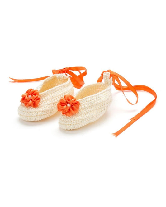 White & Yellow Handmade Crochet Baby Infant Girl Booties