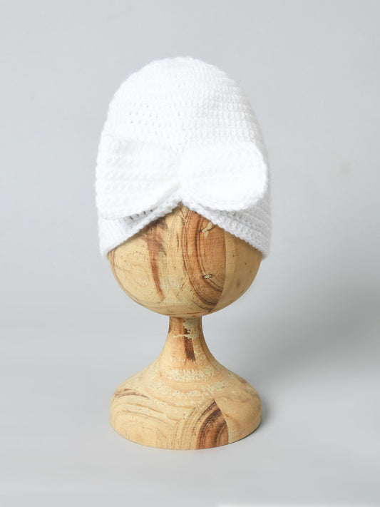 Yellow & White Handmade Woollen Cap with Bow for Girls