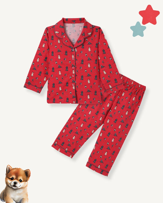 White Puppy Printed Pure Cotton Night Suit for Kids