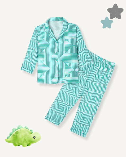 Blue Premium Cotton Full Sleeves Graphic Printed Collar Style Nightsuit for Boys & Girls