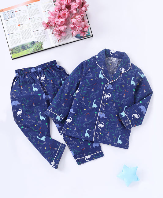 Blue Dinosaur Printed Pure Cotton Night Suit for Kids