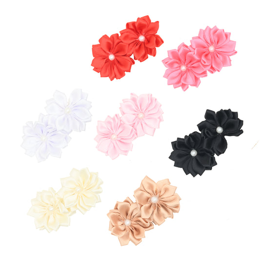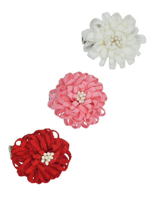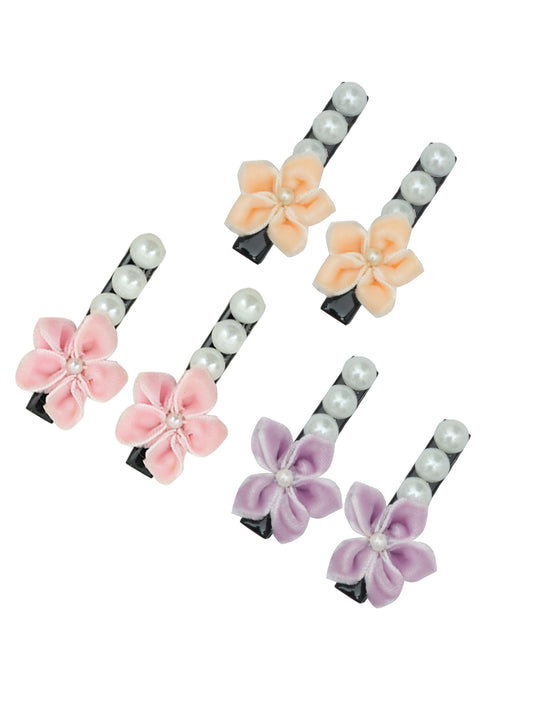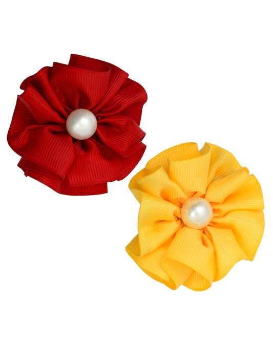 Pack Of 2 Pearl Embellished Velvet Hairclips - Multicolor