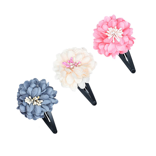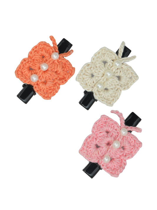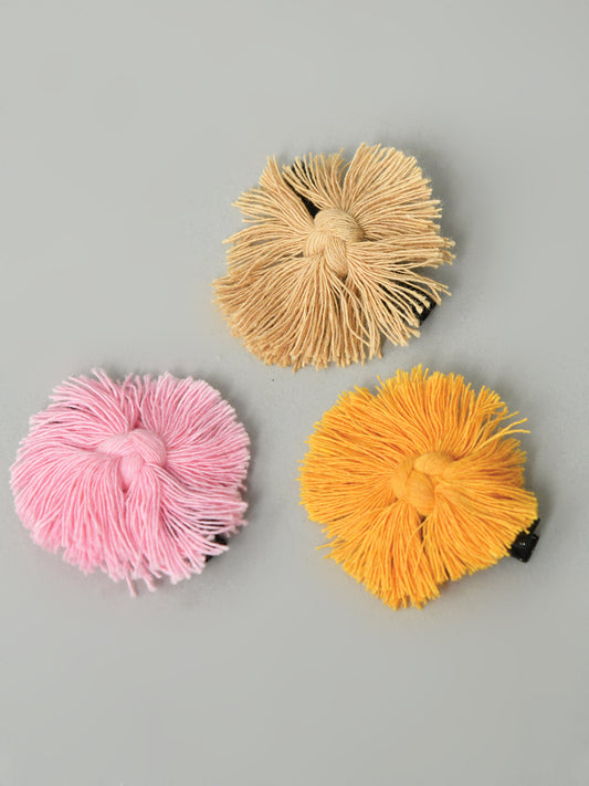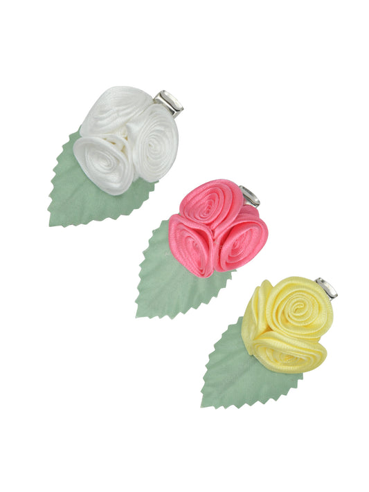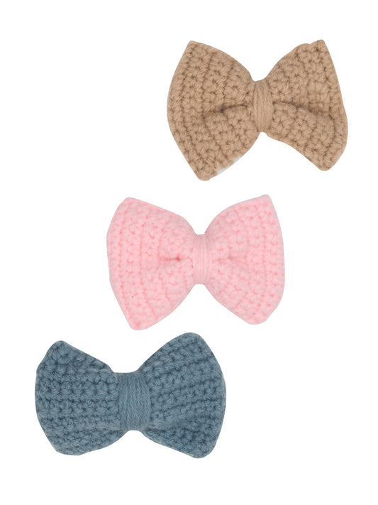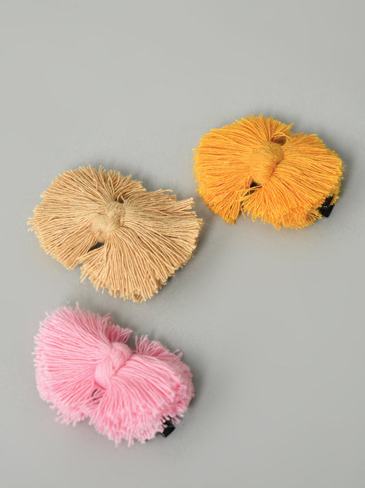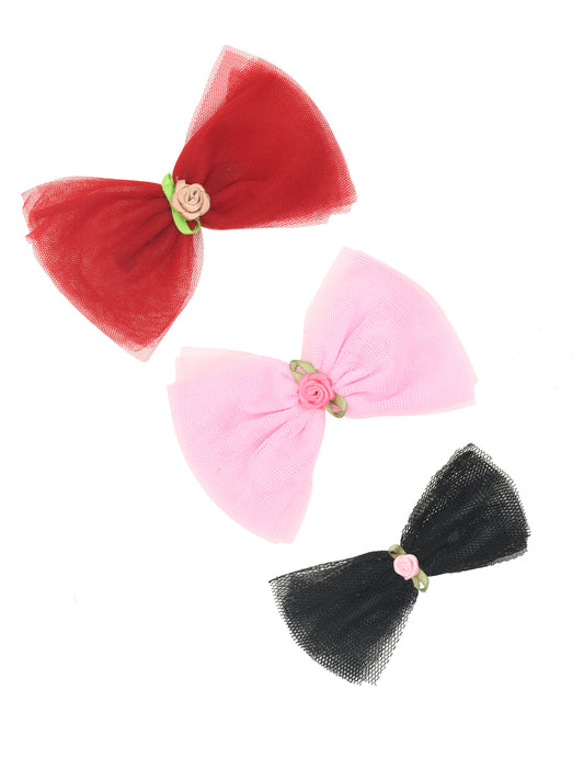 Pack Of 3 Linen Embroided Bow Hairclips - Multicolor