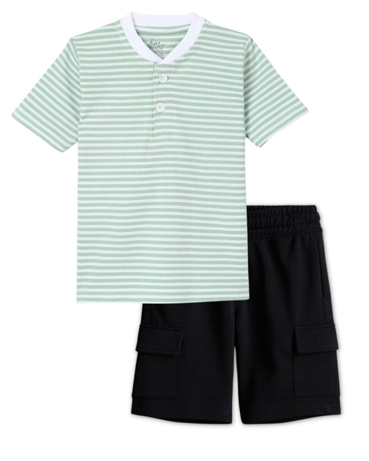 Dinosaur Printed Premium Cotton Half Sleeves Green T-Shirt with Black Shorts for Boys