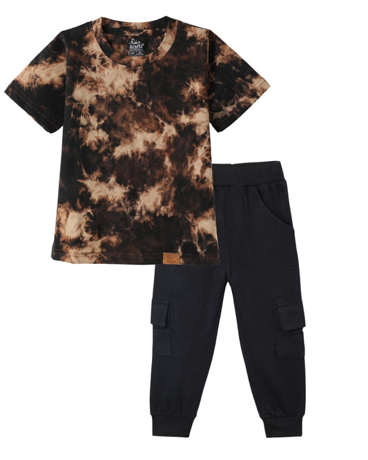 Brown Tie & Dye Printed Premium Cotton T-Shirt & Jogger Set for Boys