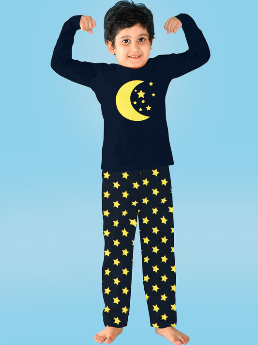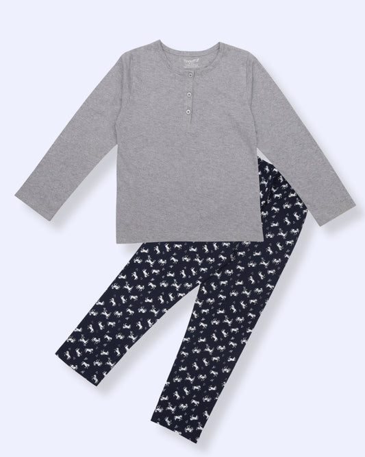 Blue & Grey Typographic Printed Cotton Night Suit For Boys