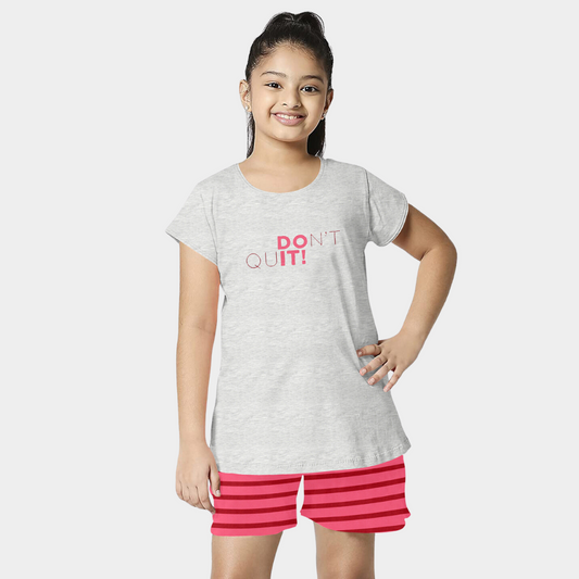 Pink & Grey Checks Printed Cotton Nightwear for Girls
