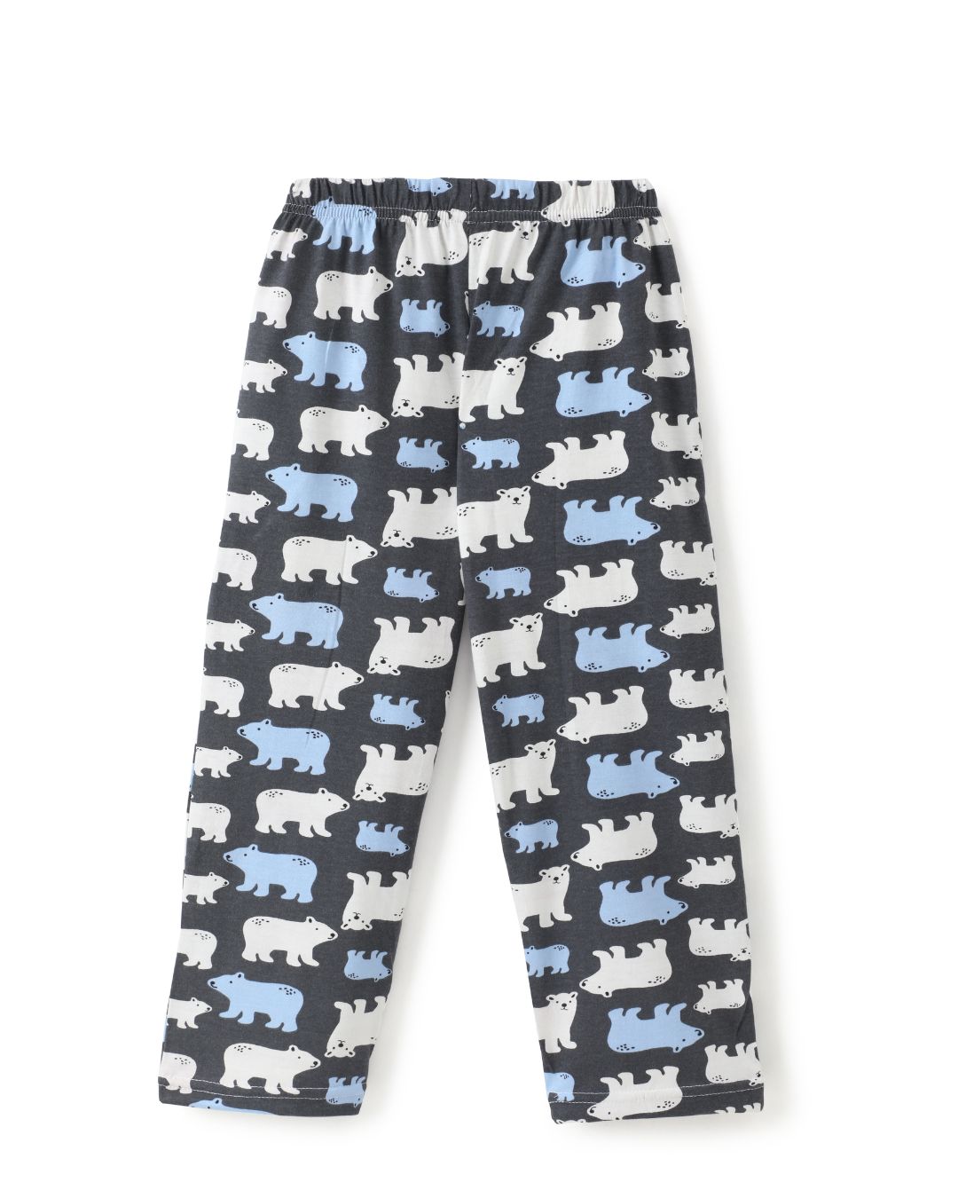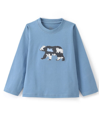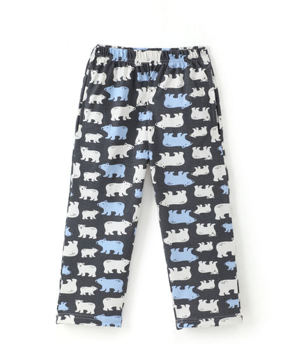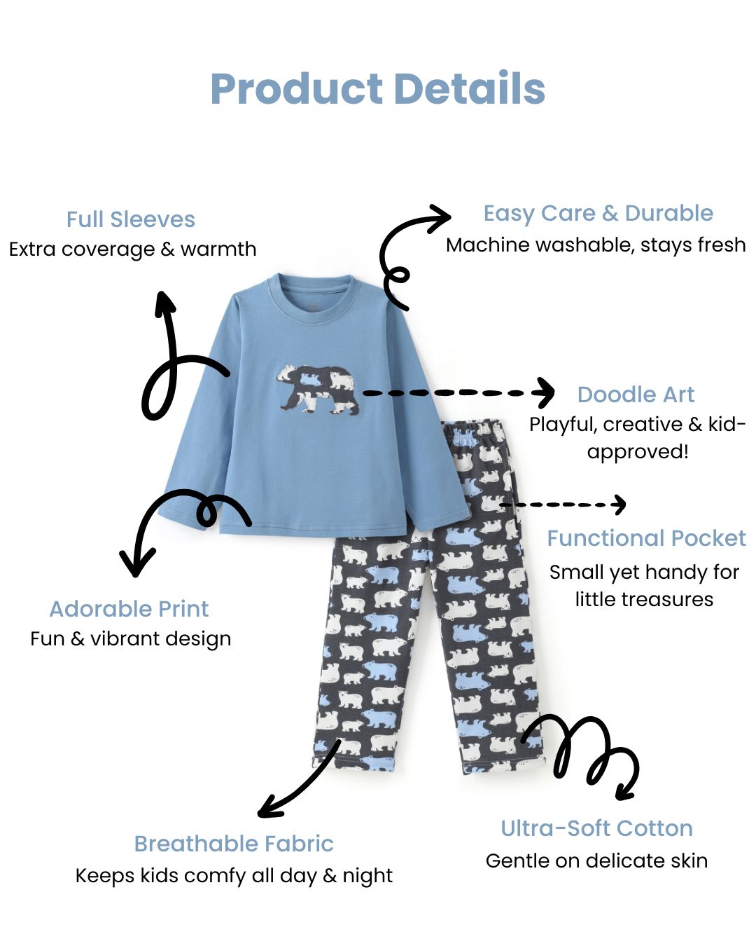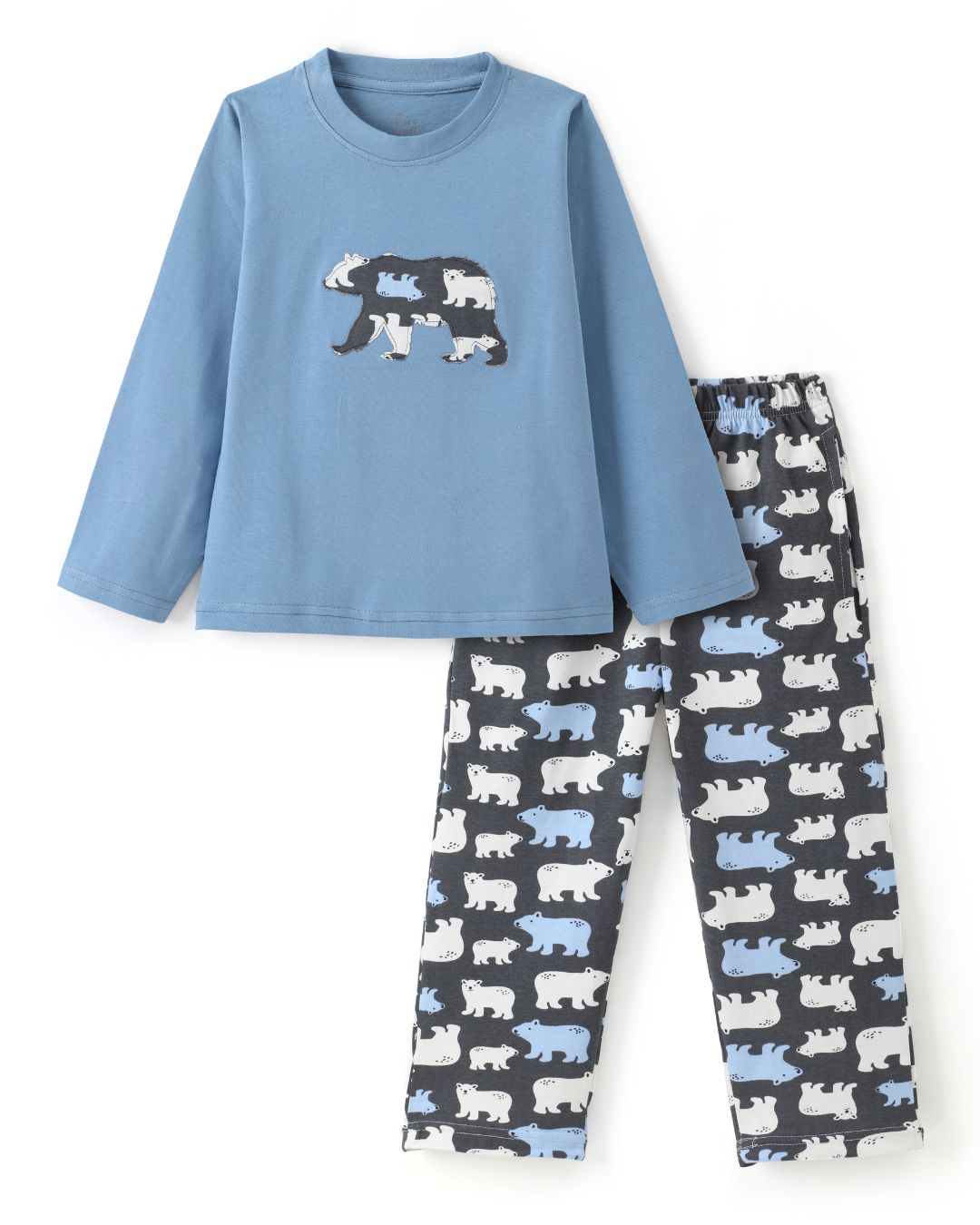 Bear Printed Premium Cotton Full Sleeves Blue T-Shirt with Grey Pyjama for Boys & Girls