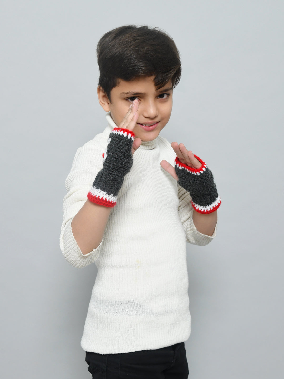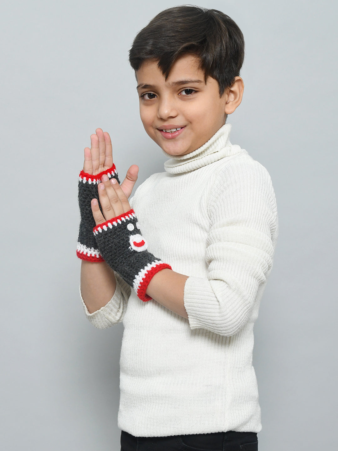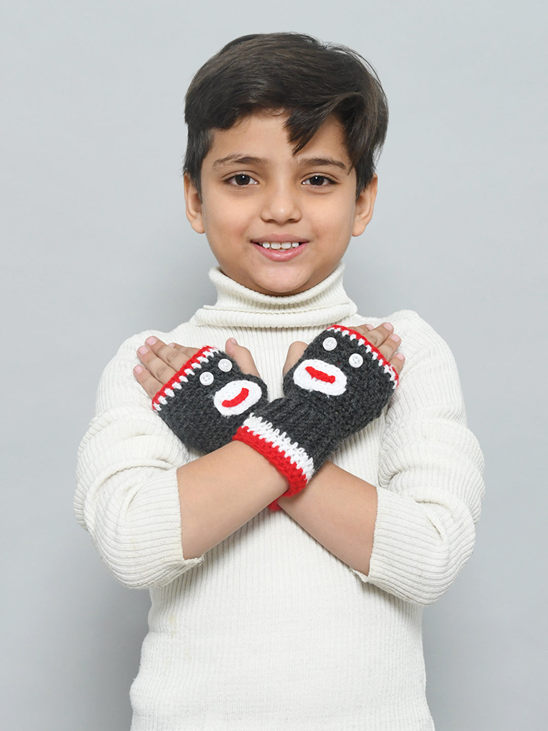 These gloves are just the accessory your little one needs to complete their winter look. Beige handmade woollen fingerless gloves for girls and boys from Funkrafts with a cool cartoon print is perfect for kids who want to express their personality. Give your child a pair of gloves that will keep them in style all season long.