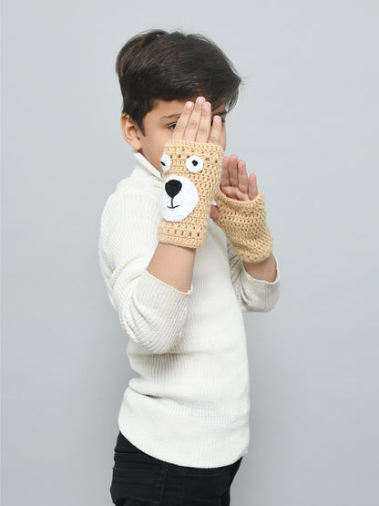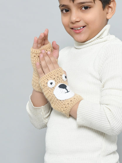 Beige Handmade Woollen Fingerless Gloves For Girls and Boys