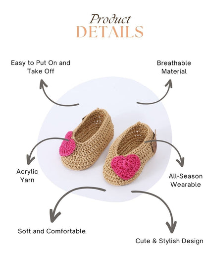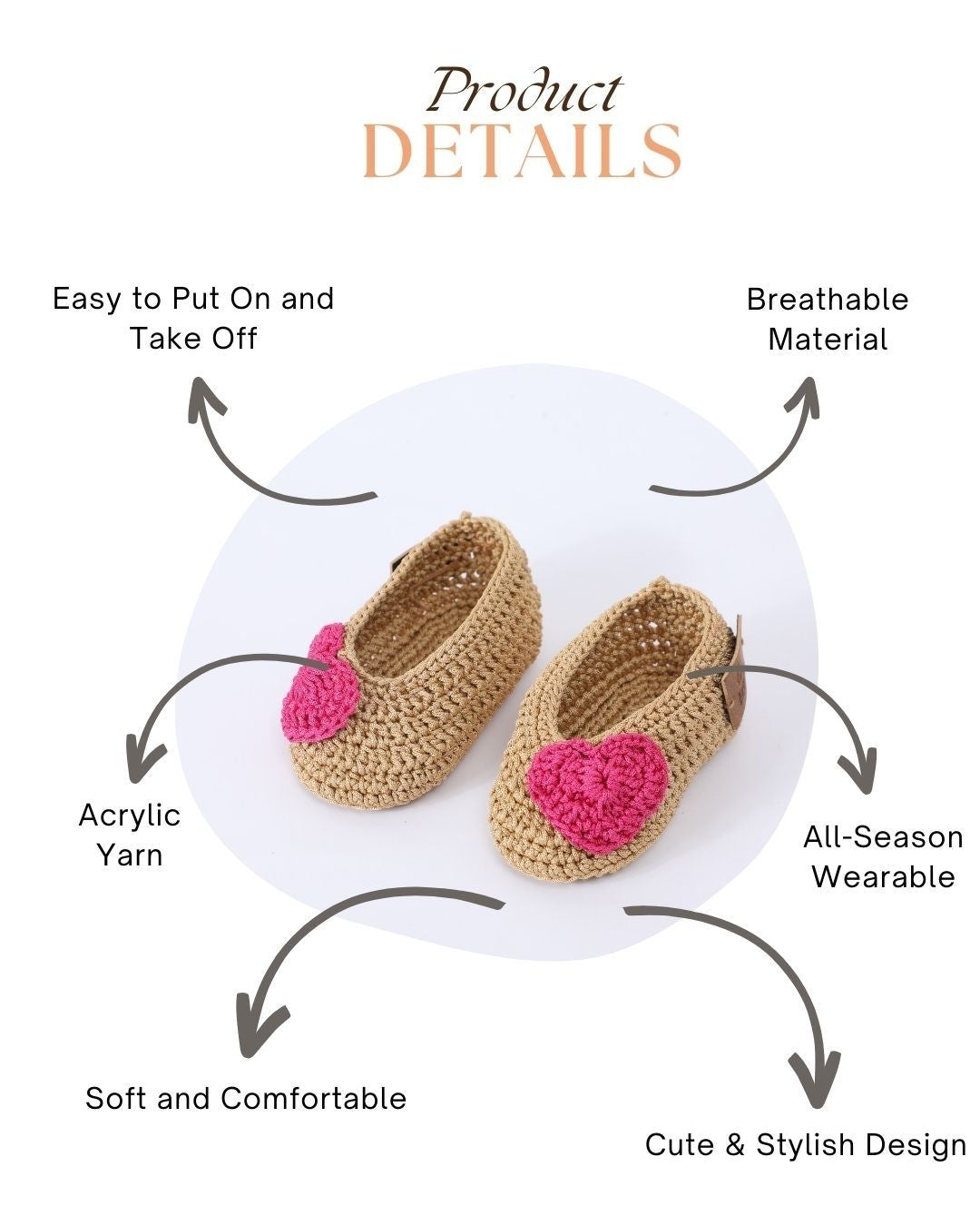 Add a touch of charm to your baby’s look with these beige and pink handmade crochet baby booties. Made from soft acrylic wool, these baby booties are perfect for infants aged 6-12 months and suitable for all seasons. The adorable beige and pink combination creates a stylish and cheerful design, making these booties for baby girls an excellent choice for any occasion. Lightweight and breathable, these booties for girls ensure comfort and flexibility for delicate feet. Whether for a casual outing or a thoughtful gift, these baby booties are a delightful addition to any baby’s wardrobe.