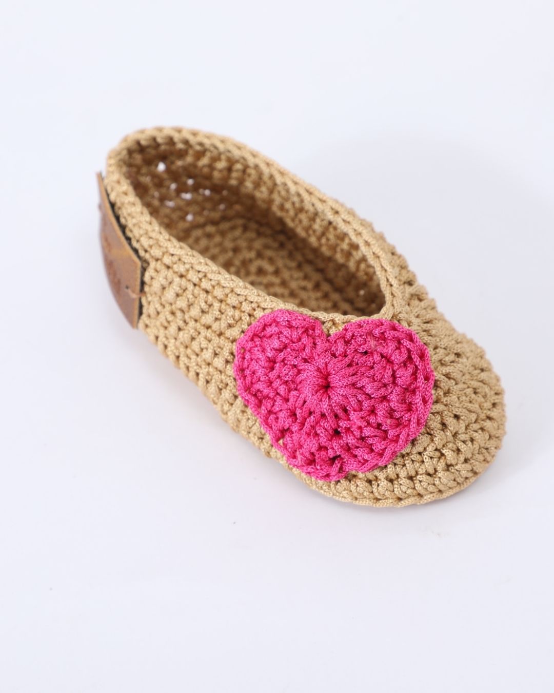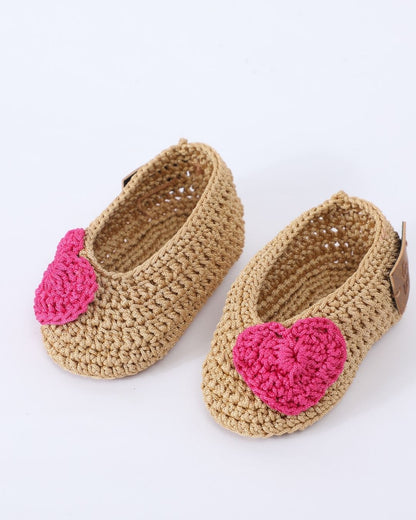 Beige & Pink Handmade Crochet Baby Infant Girl Booties