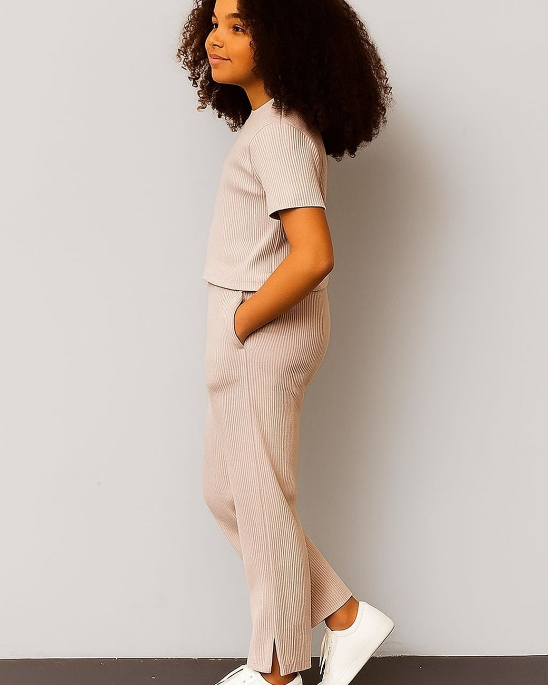 The cotton fabric allows free movement, while durable stitching ensures this set retains its shape and quality even after multiple washes. Designed for practicality and effortless style, this girls clothing set can easily become a go-to outfit for daily wear. Whether you’re looking for relaxed loungewear or a chic everyday look, this beige co-ord set for girls combines fashion, durability, and comfort seamlessly.