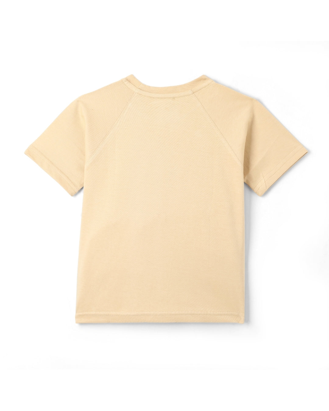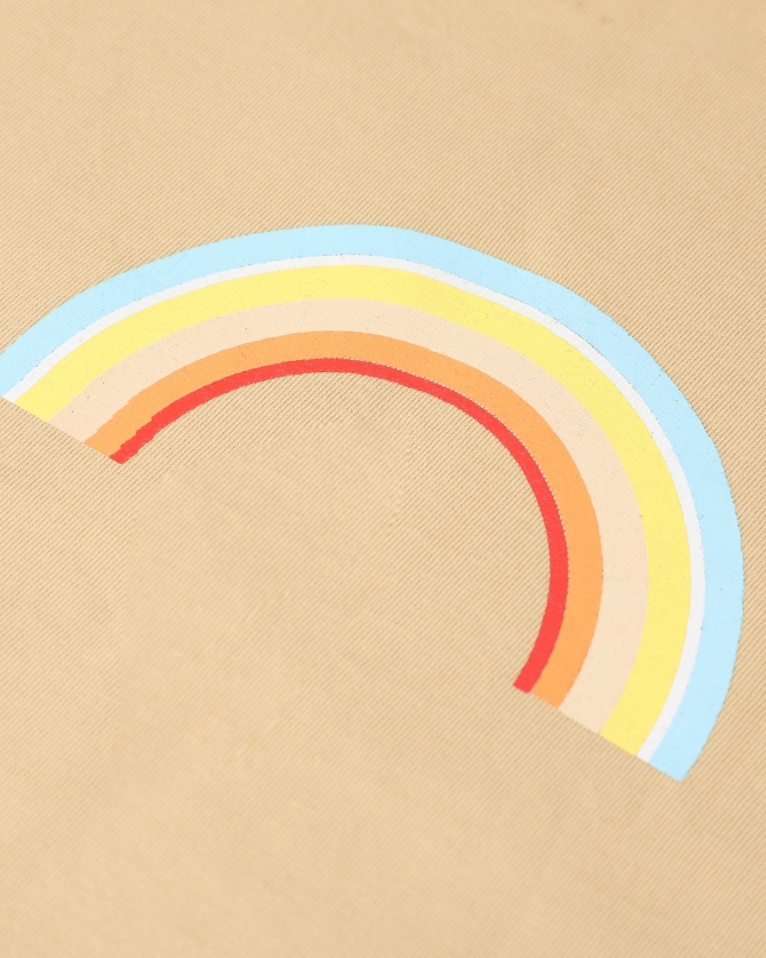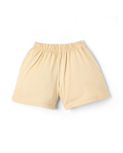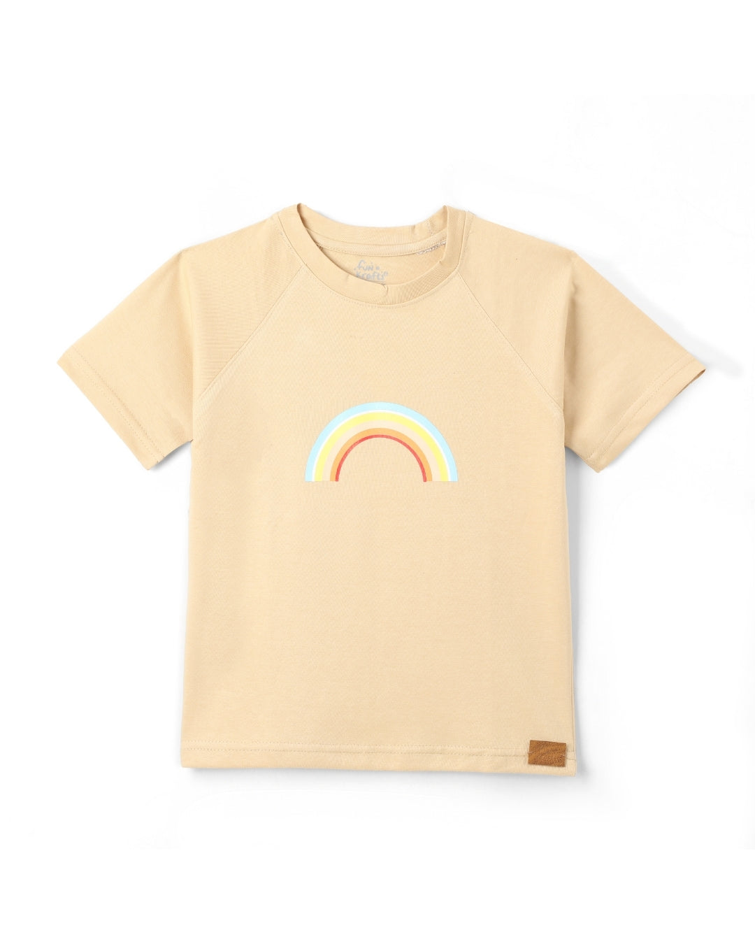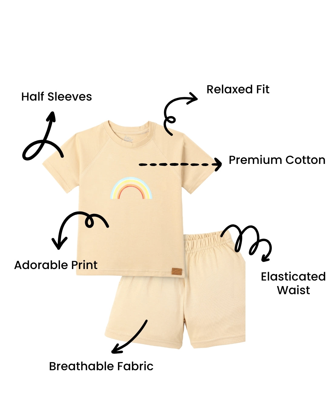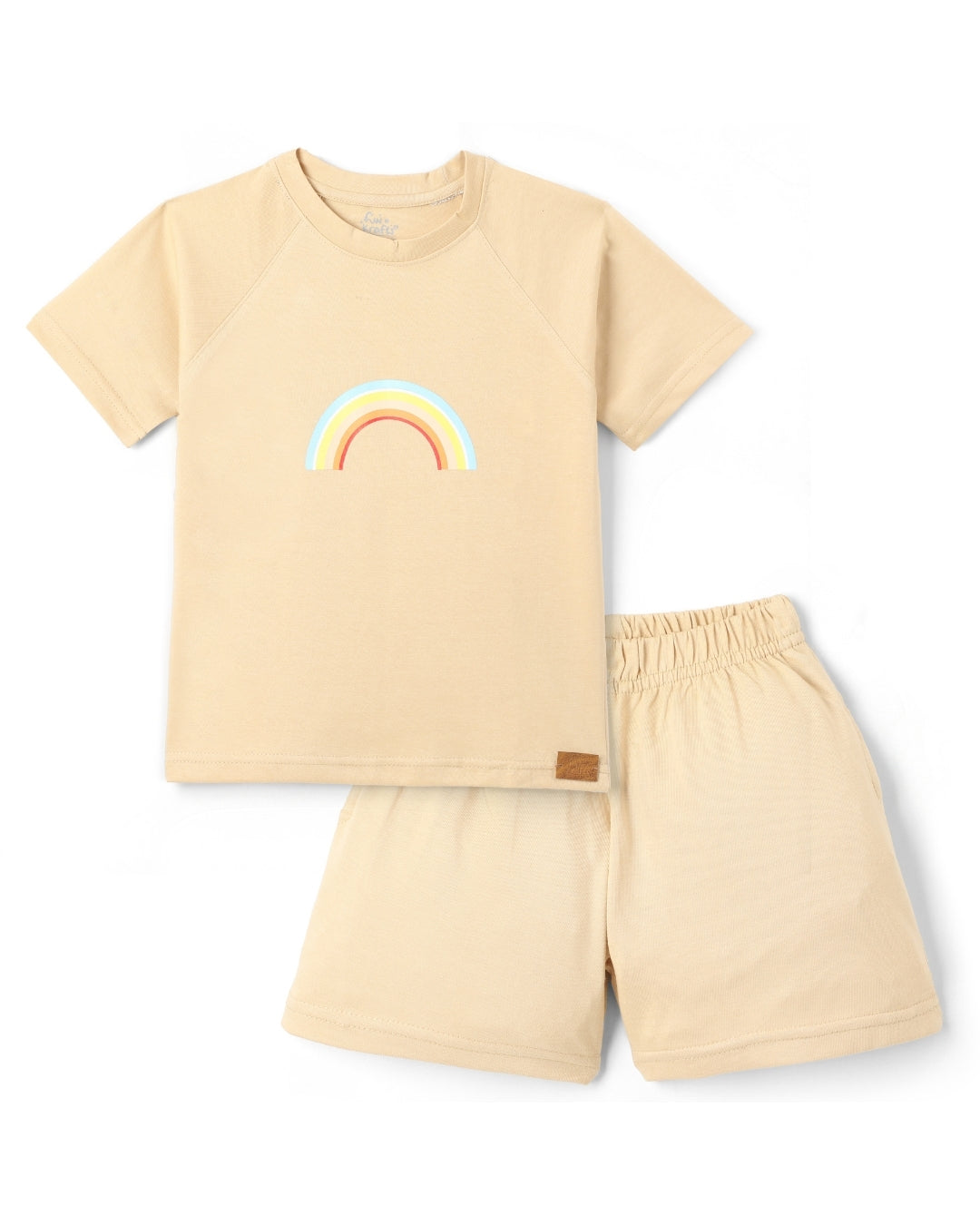 Beige Premium Cotton Raglan Sleeves Rainbow Printed T-Shirt And Shorts Set for Girls