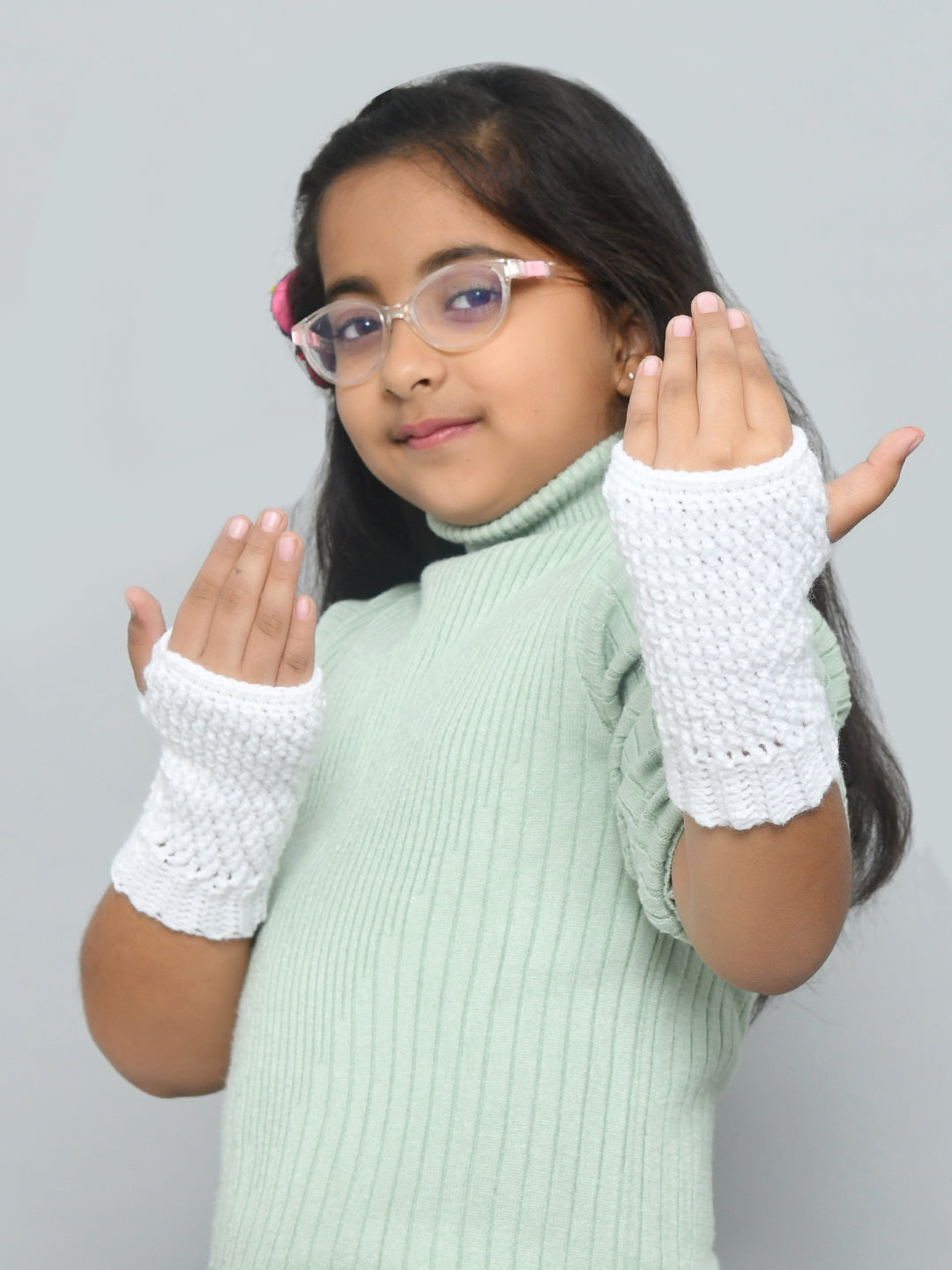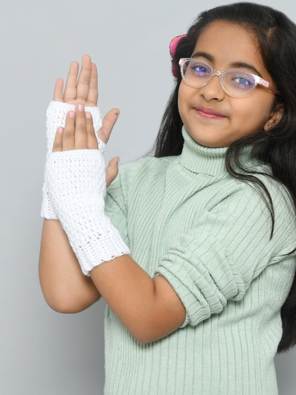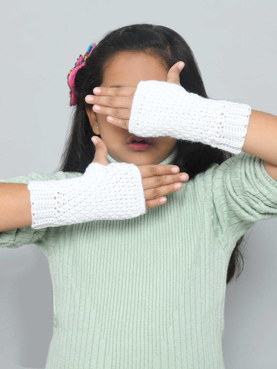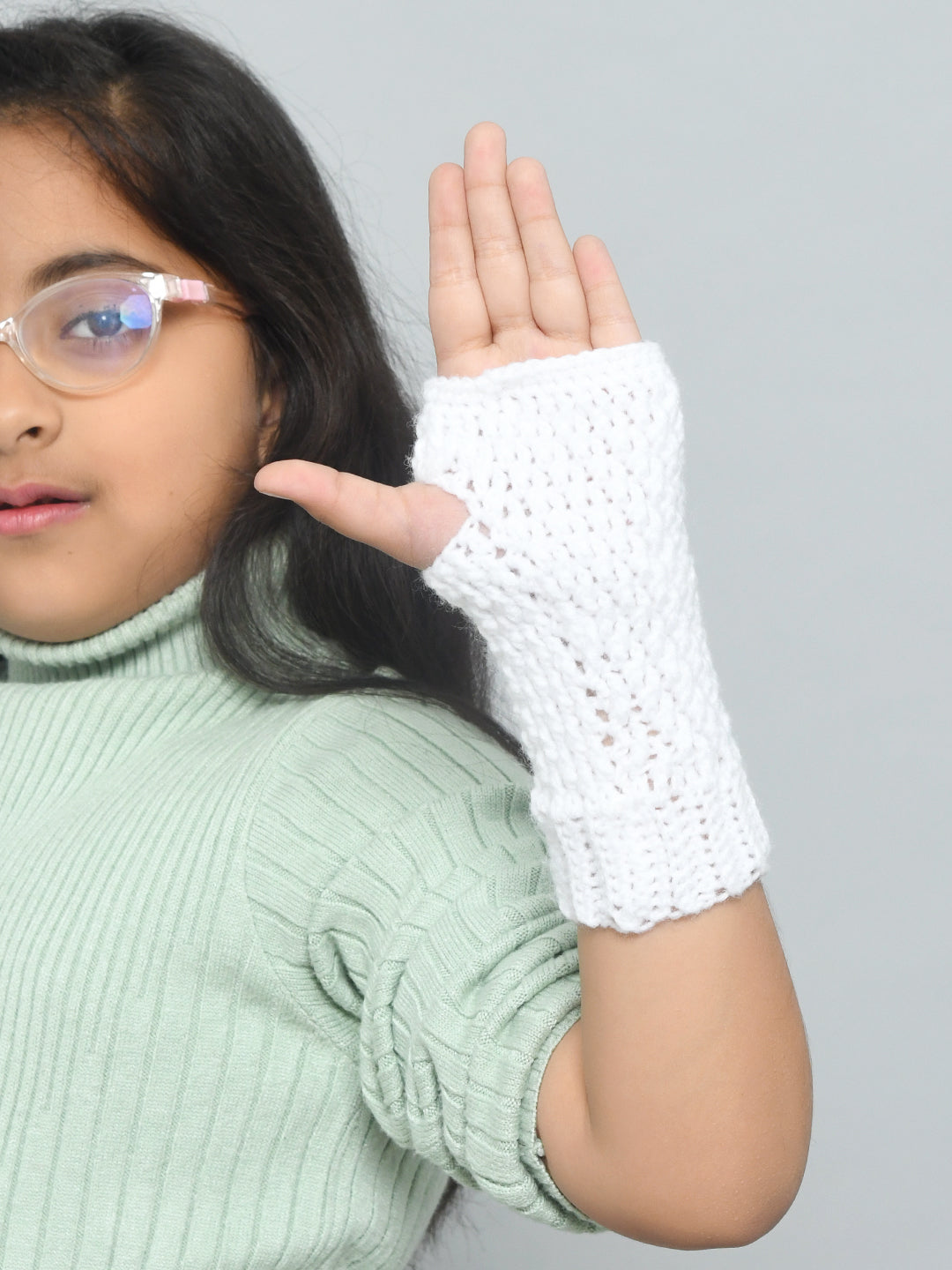 Keep your hands free and your style on point with our white handmade woollen fingerless gloves for girls and boys from Funkrafts. With a versatile and trendy design, these gloves can be dressed up to match any outfit.