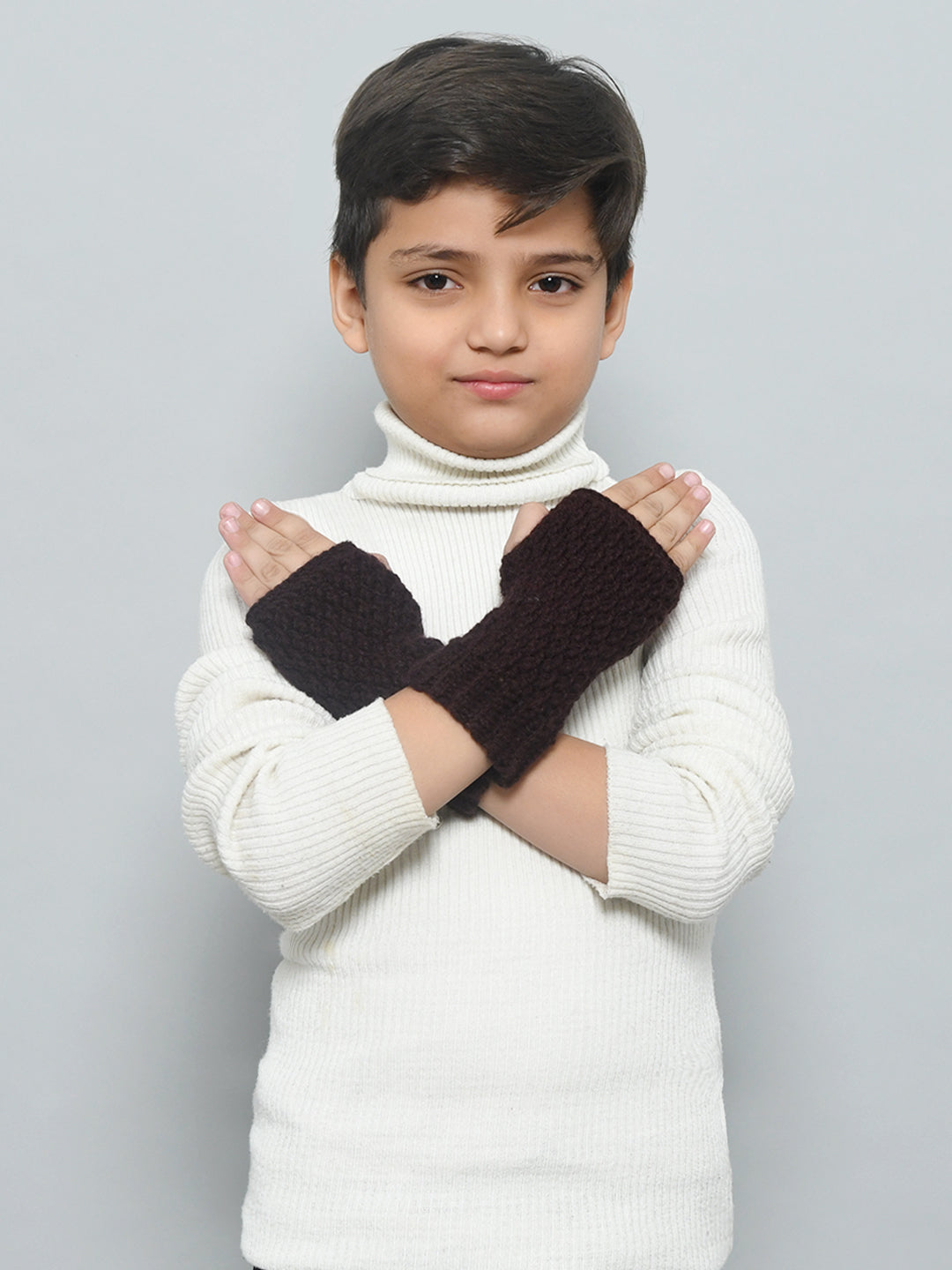 Black Handmade Woollen Fingerless Gloves For Girls and Boys