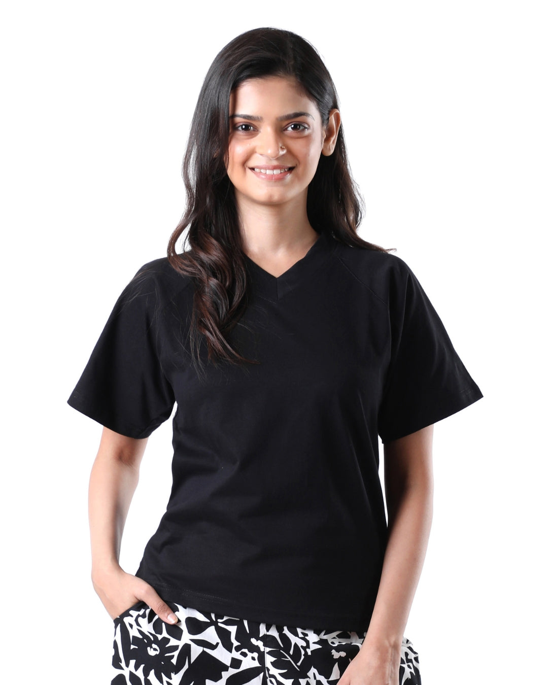 Elevate your everyday style with this Black Premium Cotton Solid T-Shirt for Women. Designed for comfort and versatility, this premium cotton t-shirt for women is a must-have in every wardrobe. Whether you're heading out or lounging in, this solid t-shirt for women offers unmatched breathability and softness. Made from high-quality cotton, this black t-shirt for women ensures long-lasting wear and style. Perfectly tailored, this cotton t-shirt for women flatters every body type and pairs effortlessly with jeans, joggers, or shorts. A solid t-shirt for women that transitions smoothly from day to night, it’s your go-to black cotton t-shirt for women. Whether you need a casual t-shirt for women or a stylish everyday option, this premium cotton t-shirt for women checks all boxes. The classic black t-shirt for women never goes out of fashion. Add this cotton solid t-shirt for women to your collection and redefine comfort and class with every wear.