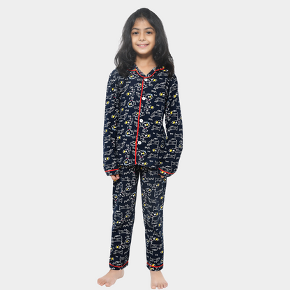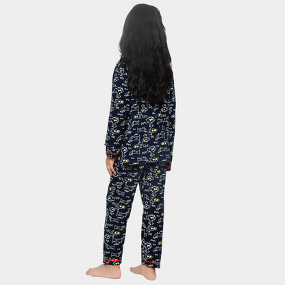 Woof! Open up your wardrobe to this printed kids night suit featuring our furry friends. The fabric guarantees a gentle touch. The print makes it a captivating option.