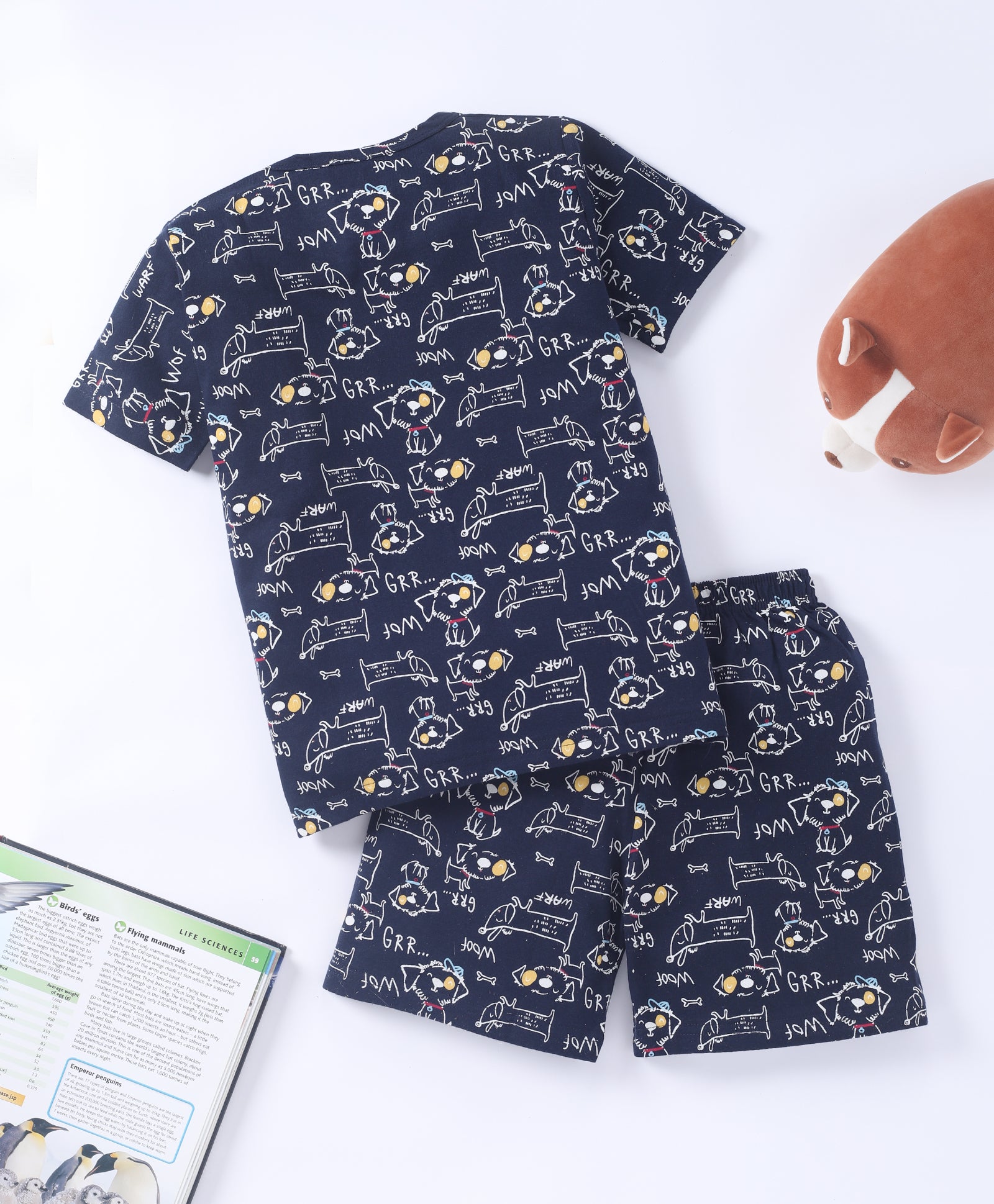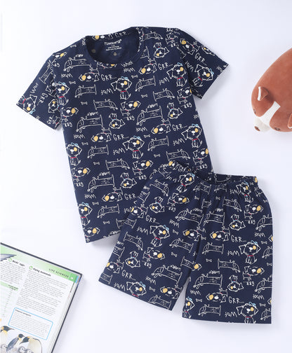 Blue & Black Pure Cotton Half Sleeves Car & Puppy Printed Shorts Set for Boys - Pack of 2