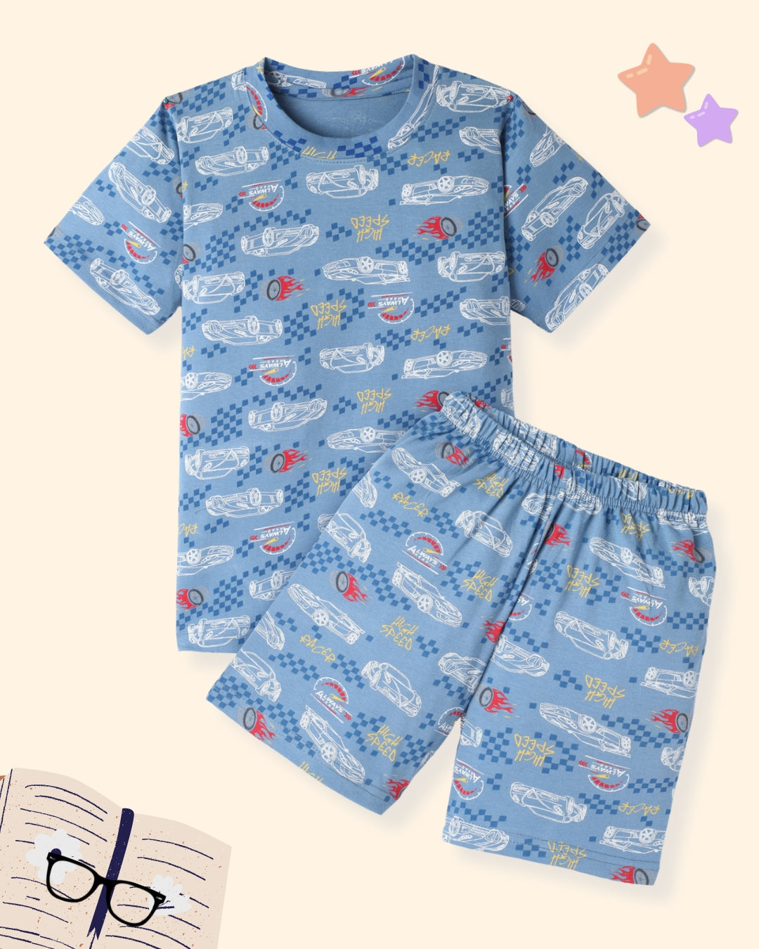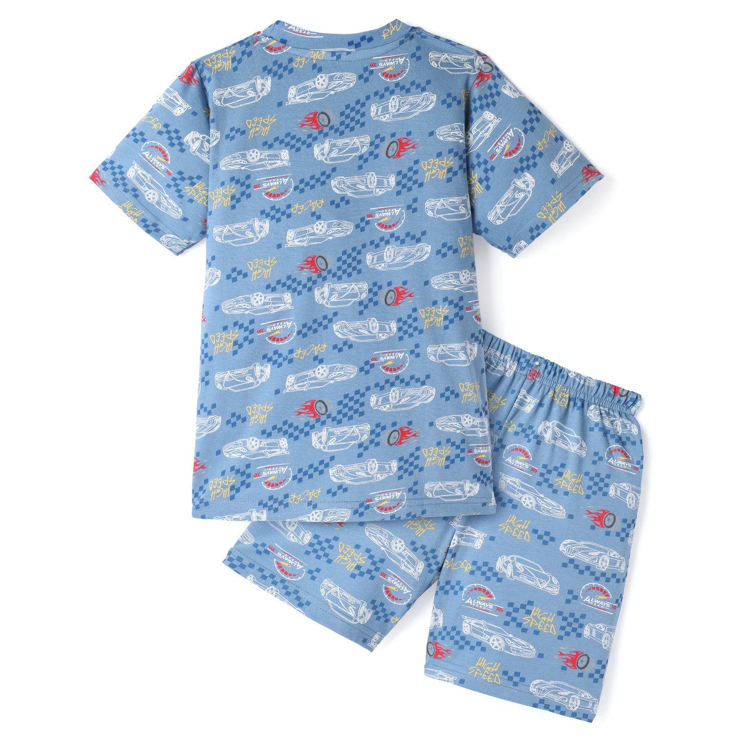 Blue Boys Pure Cotton Half Sleeves Printed T-shirt & Shorts Set
