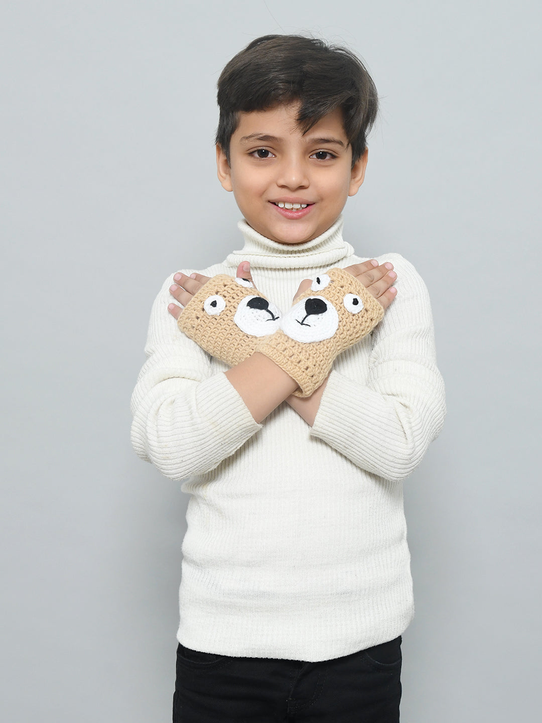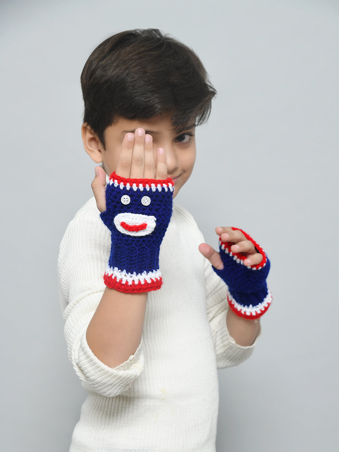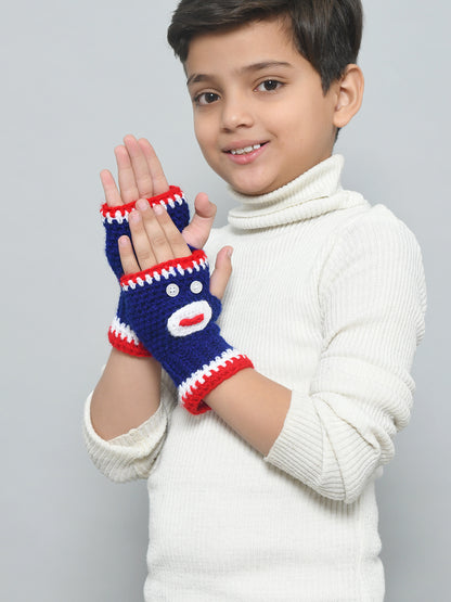 These gloves are just the accessory your little one needs to complete their winter look. Blue handmade woollen fingerless gloves for girls and boys from Funkrafts with a cool cartoon print is perfect for kids who want to express their personality. Give your child a pair of gloves that will keep them in style all season long.