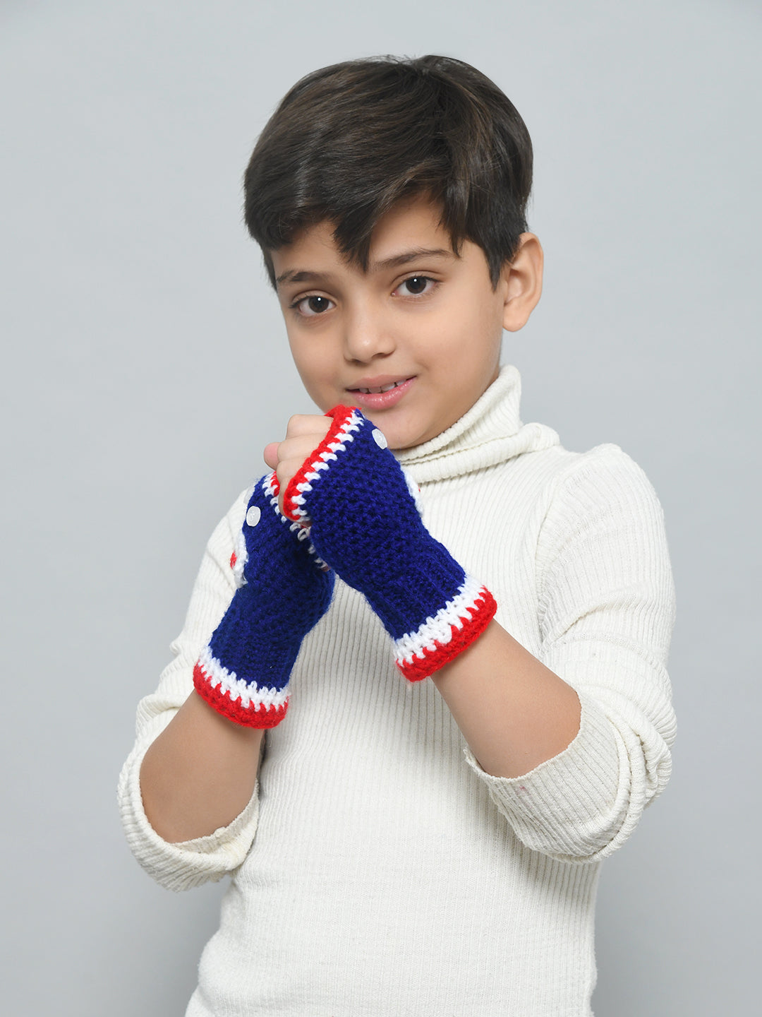Blue Handmade Woollen Fingerless Gloves For Girls and Boys