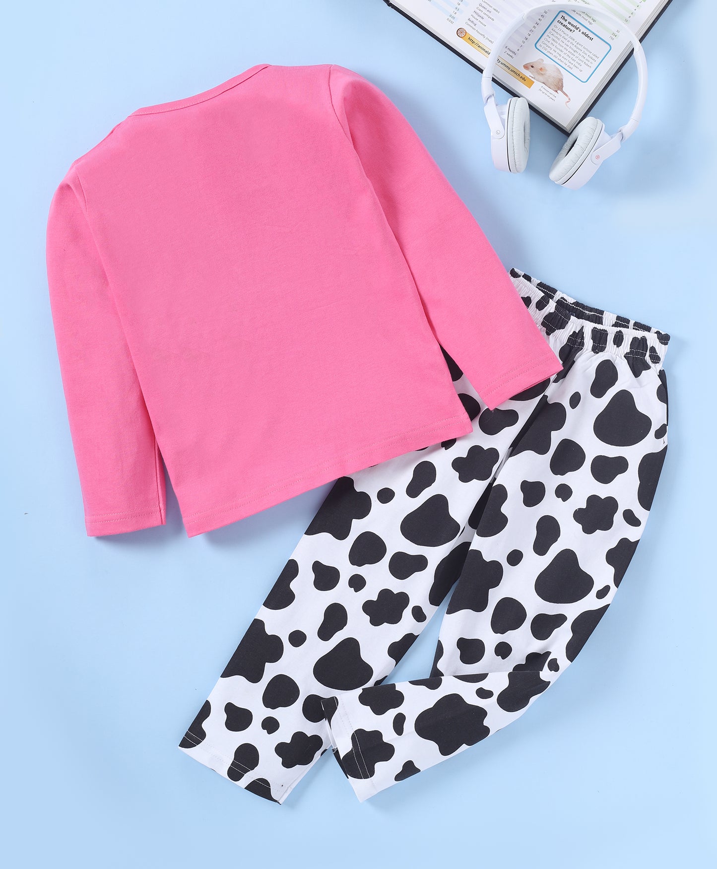 Navy Blue & Pink Pure Cotton Knitted Full Sleeves Bear & Cow Printed Nightsuit for Girls - Pack of 2