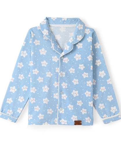 This black star-printed T-shirt and pyjama set is a dreamy choice for both boys and girls. Crafted from premium cotton, this co-ord set offers unmatched comfort for bedtime or lounging. The half-sleeve T-shirt is adorned with a playful star print that brings a touch of whimsy to the outfit, while the soft and breathable pyjamas ensure a relaxed fit that keeps your little one cozy all night long. Designed with comfort in mind, the lightweight cotton fabric allows for breathability and movement, making it ideal for active kids who love to play, lounge, or sleep without feeling restricted. The black color, combined with the starry design, makes this set a stylish pick for kids who love space or simply enjoy unique, fashionable designs. Whether it’s for bedtime, casual lounging, or pajama parties, this set is easy to care for and will quickly become a favorite in your child's sleepwear collection.