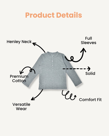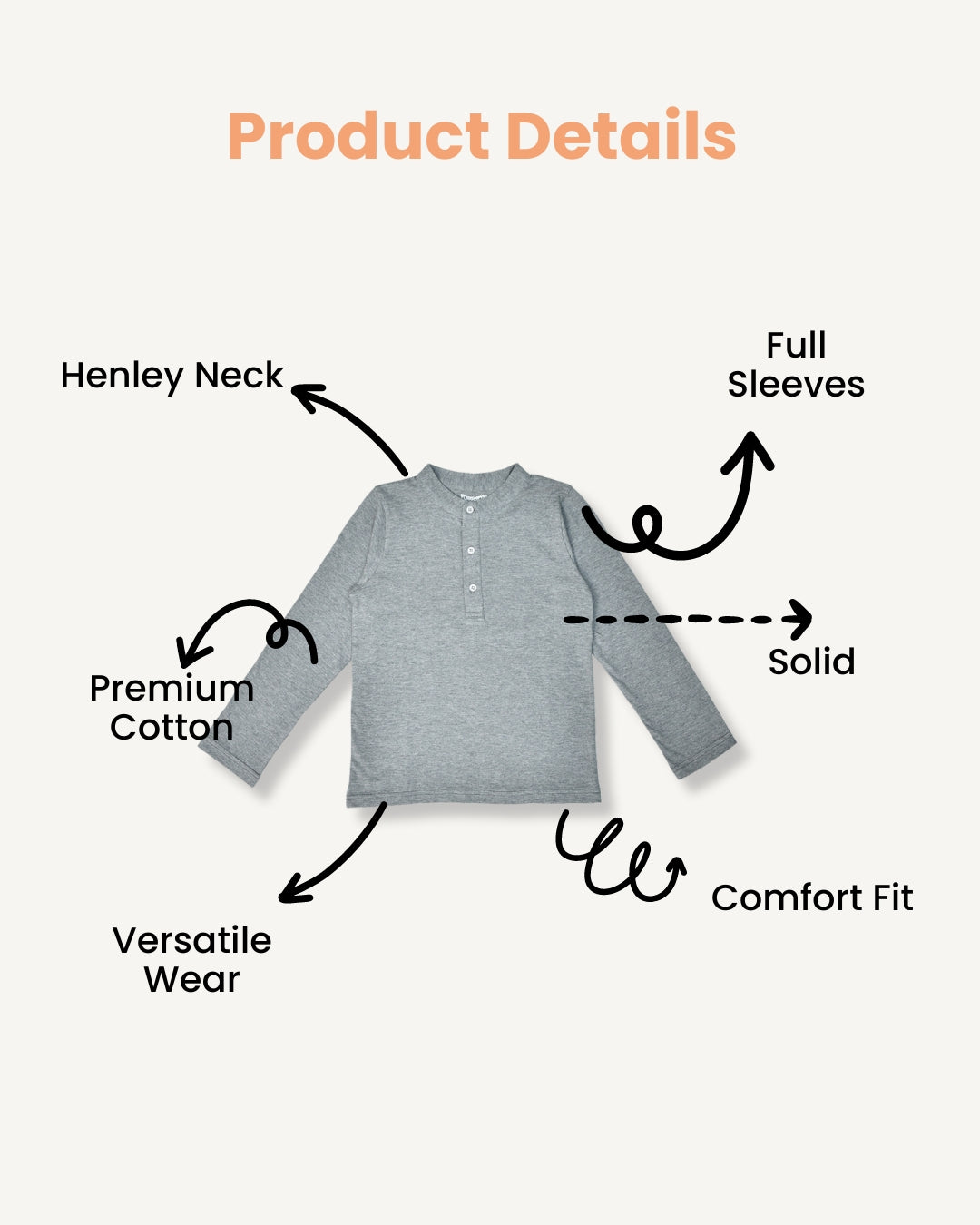 He'll love the look and feel of this ultra-contemporary boys grey pure cotton T-shirt by FUNKRAFTS. Regular fit T-shirt, has a henley neck and full sleeves.