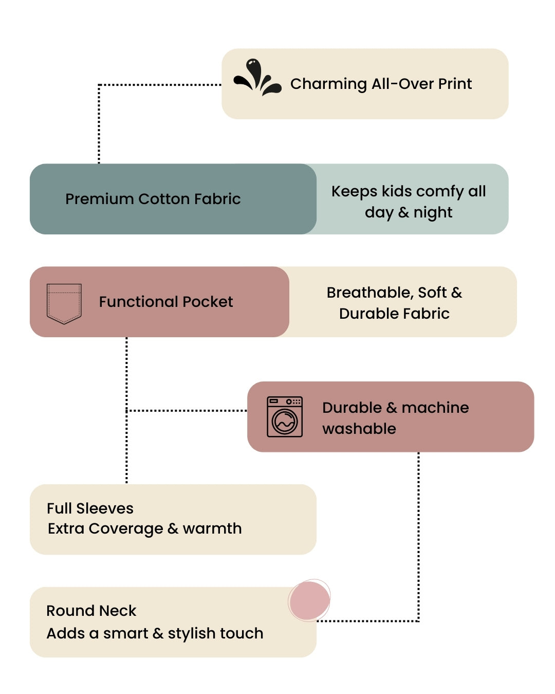 Brighten your child’s wardrobe with this multicolour elephant printed premium cotton t-shirt & pyjama set made for both boys and girls. The playful elephant design creates a cheerful look, while the soft cotton fabric ensures full-day comfort. This full sleeves clothing set works beautifully as a nightsuit for peaceful sleep and equally well as loungewear for home routines. Designed for comfort and movement, this t-shirt & pyjama set features a relaxed fit that keeps kids comfortable whether they are studying, relaxing, or playing indoors. The breathable material makes it a reliable clothing set throughout the year. Parents love this t-shirt & pyjama set because it functions as a nightsuit, loungewear, and casual home clothing set all in one. Gentle on skin and easy to wear, this multicolour clothing set is also a great gifting option. A perfect mix of cuteness, softness, and practicality, this t-shirt & pyjama set becomes a daily favourite for boys and girls.