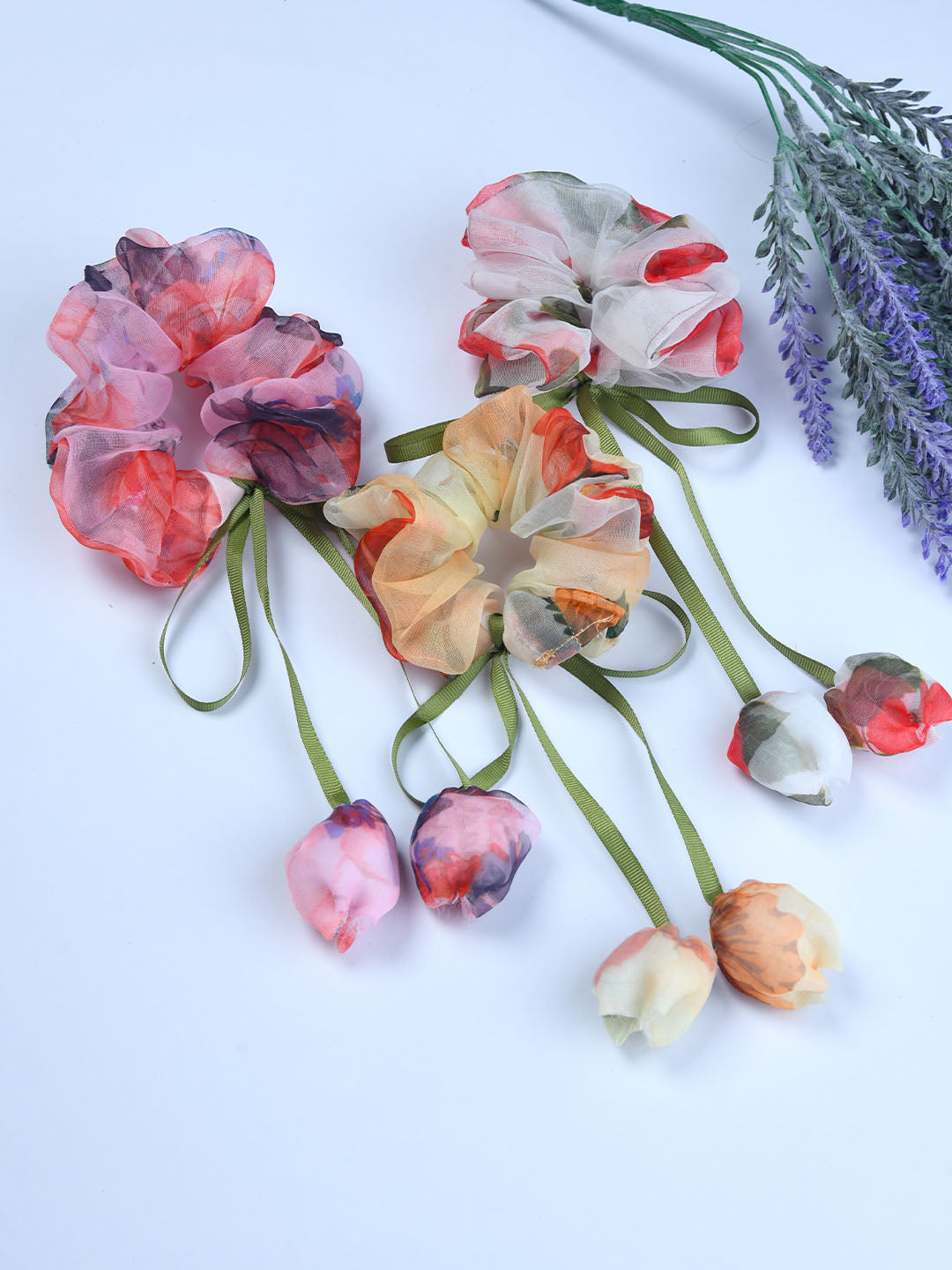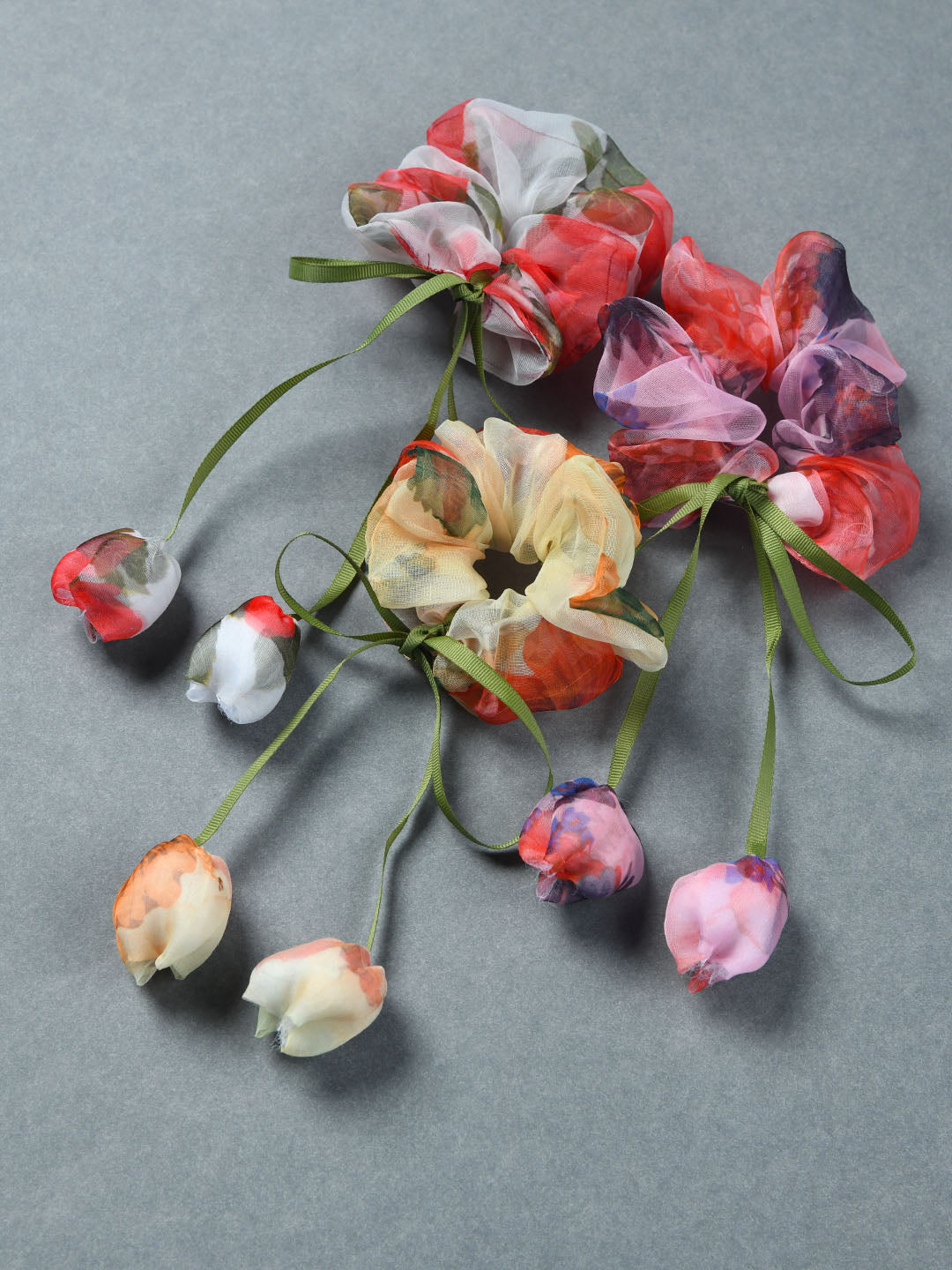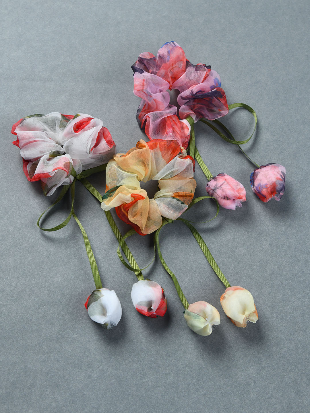 Light as air, these organza scrunchies with tulip strings bring soft color and volume to any hairstyle—perfect for parties or daily use.