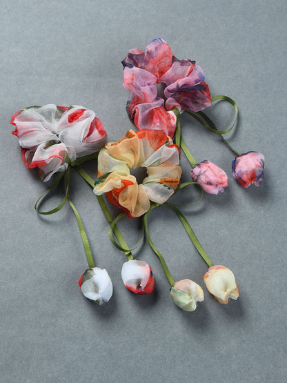 Funkrafts Organza Scrunchie With Tulip String Set Of 3 - Multicolor