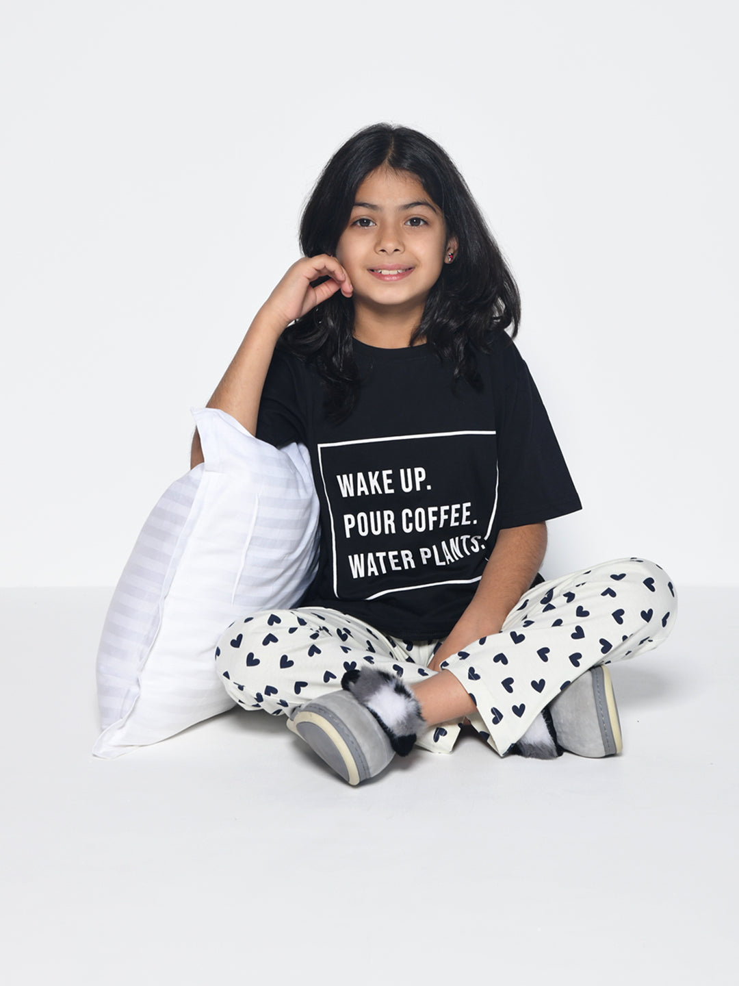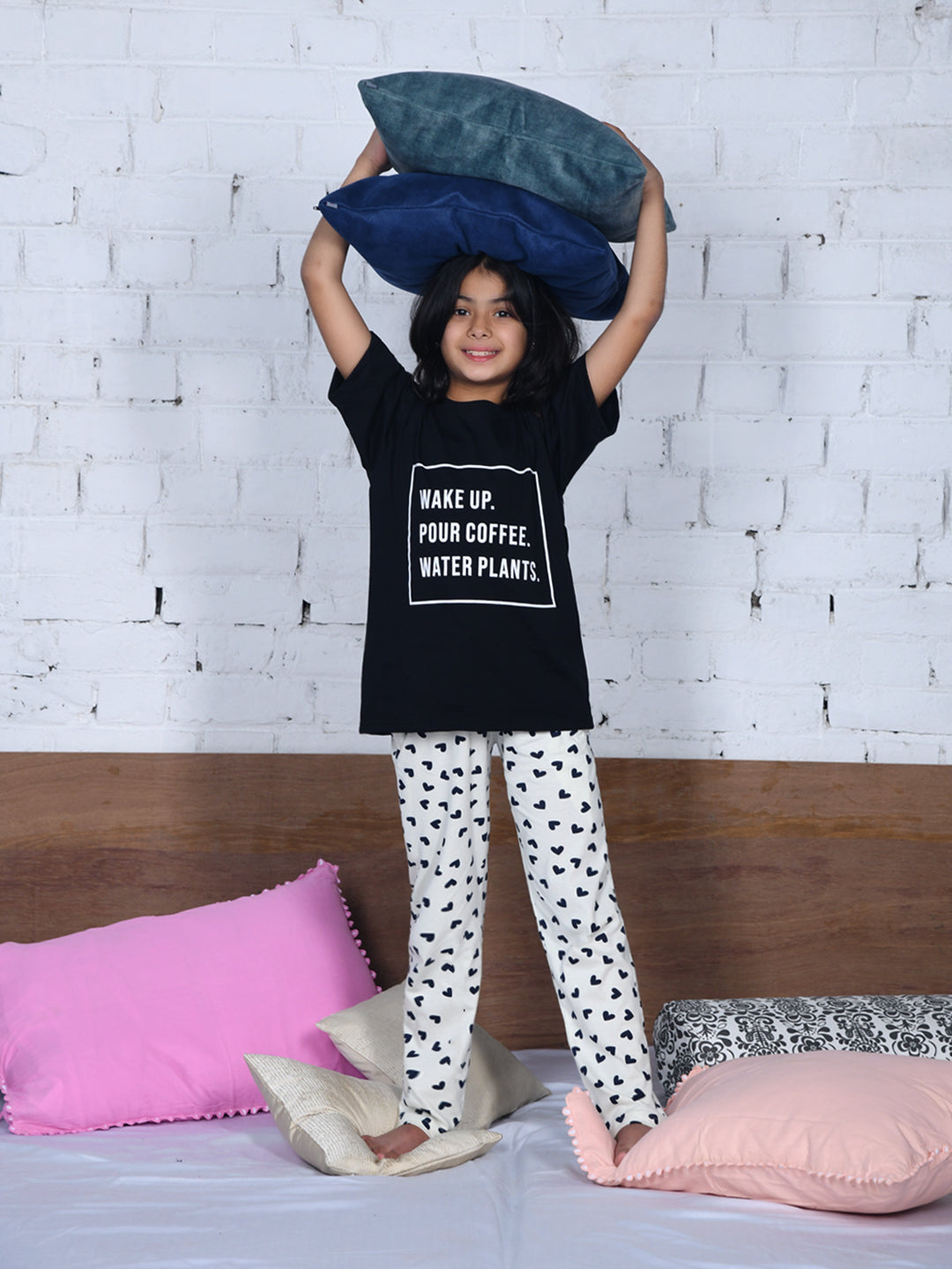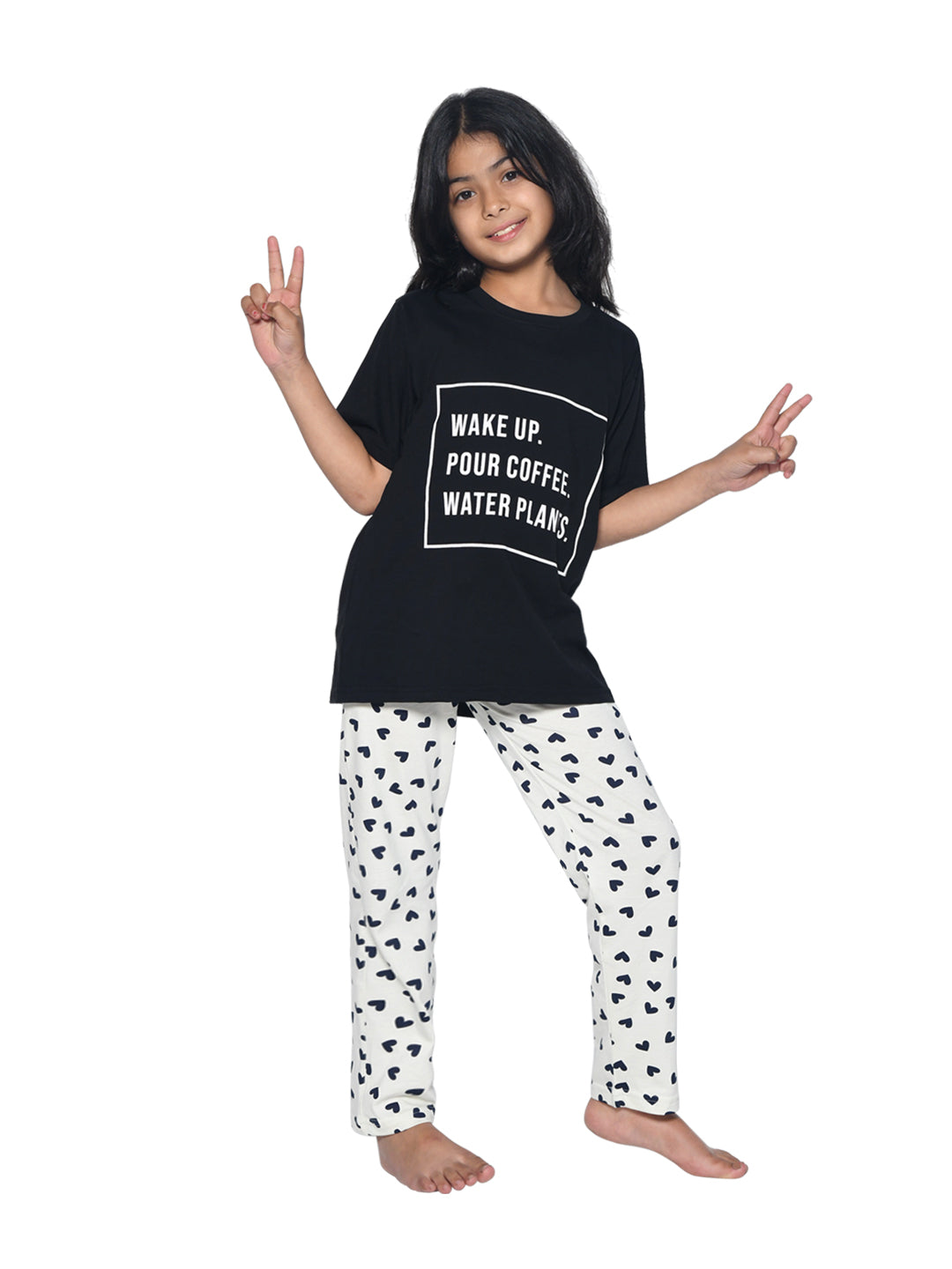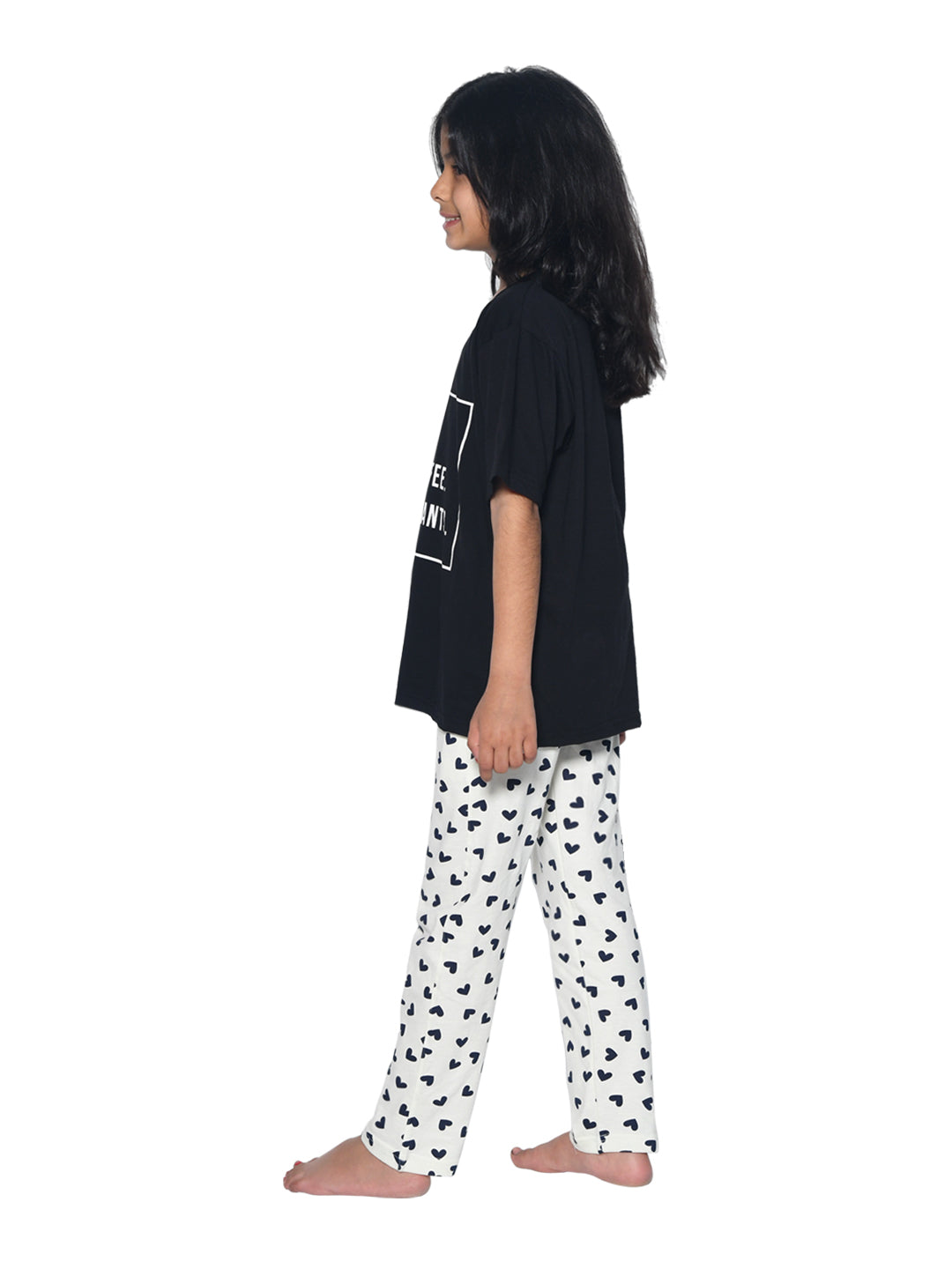 The black & white typography nightsuit is soft and trendy. My daughter enjoys wearing this comfortable t-shirt & pyjama set for her nightwear.