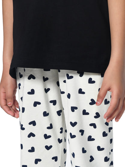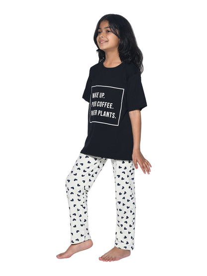 Girls Black & White Typography Printed Night suit