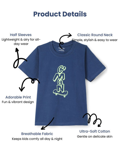 This trendy t-shirt for boys features a cool graphic print, adding a stylish edge to any casual look. Made from soft premium cotton, this boys t-shirt ensures maximum comfort and breathability. The relaxed half-sleeves design allows ease of movement, making it perfect for active kids. Whether for school, outdoor play, or lounging at home, this t-shirt for boys is an everyday essential. The high-quality fabric maintains its shape and color even after repeated washes, ensuring durability. The versatile blue color makes it easy to pair with jeans, joggers, or shorts for effortless styling. Designed for comfort and style, this boys t-shirt is a must-have in every kid’s wardrobe. The lightweight and breathable fabric ensures kids stay cool all day long. Give your child a trendy and comfortable look with this t-shirt for boys, a perfect blend of fashion and function. A must-have boys t-shirt for everyday wear.