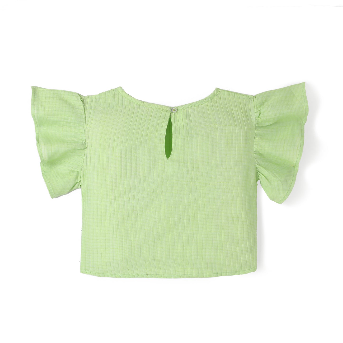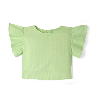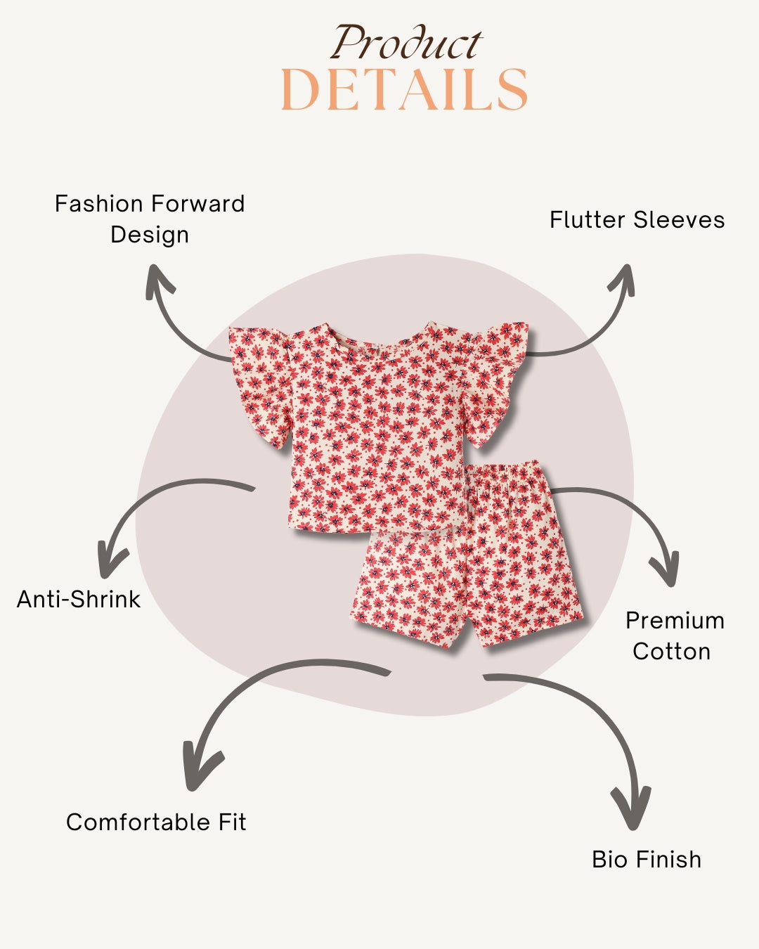 Green & Red Premium Cotton Bio Finish Flutter Sleeves Top & Shorts Co-ord Set for Girls - Pack of 2