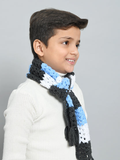 Keep your child warm and stylish with this grey & blue handmade woollen muffler for girls and boys from Funkrafts. The playful design is perfect for kids of all ages.