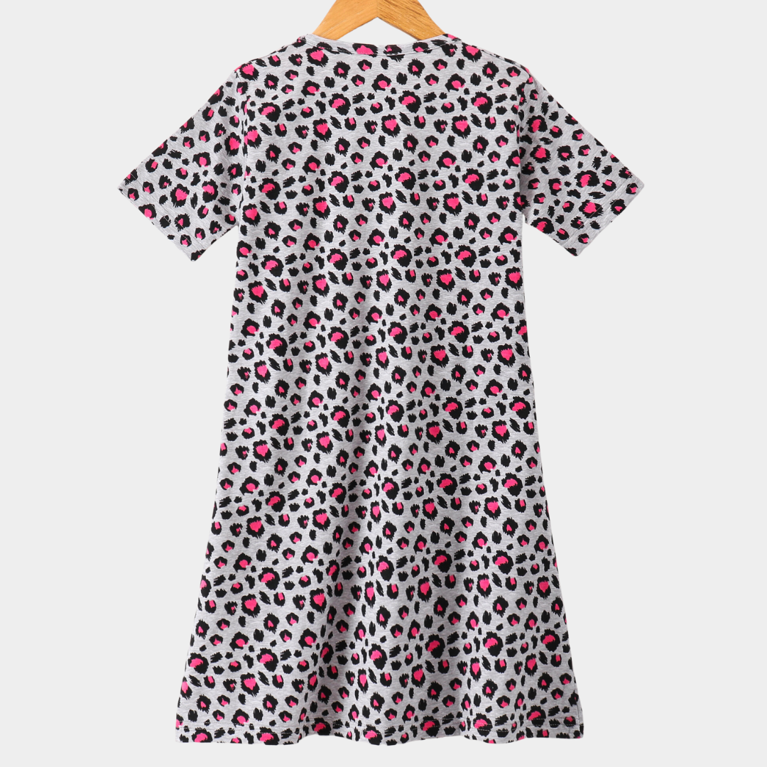 We know your daughter will love wearing this bold grey cheetah print cotton nightdress by Funkrafts. Made using a soft, stretchy fabric with a relaxed fit, this is perfect for lounging around.