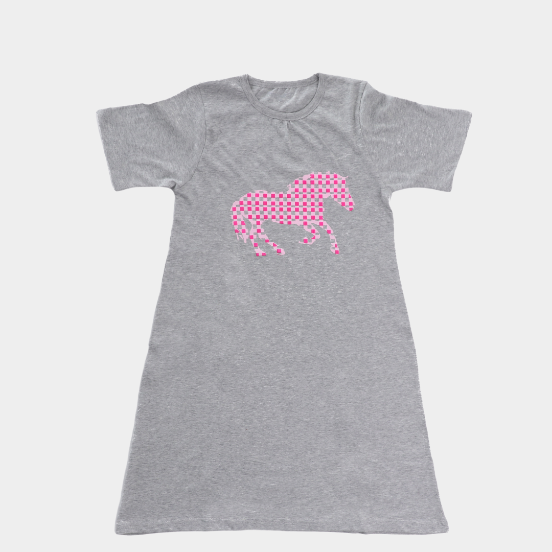 Grey Horse Printed Cotton Night Dress for Girls