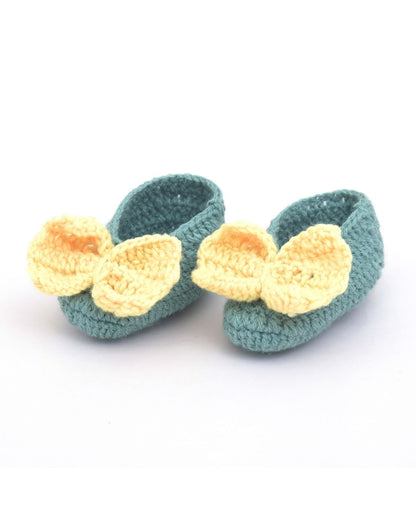 A sweet and special gift for the expecting mother's baby shower. These grey woollen baby booties with headband for girls are the perfect way to keep your little one's feet warm and cozy.