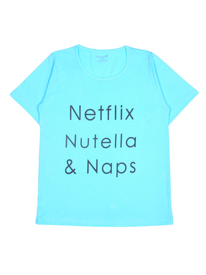 Half Sleeves Typography Printed Girls T-Shirt - Blue