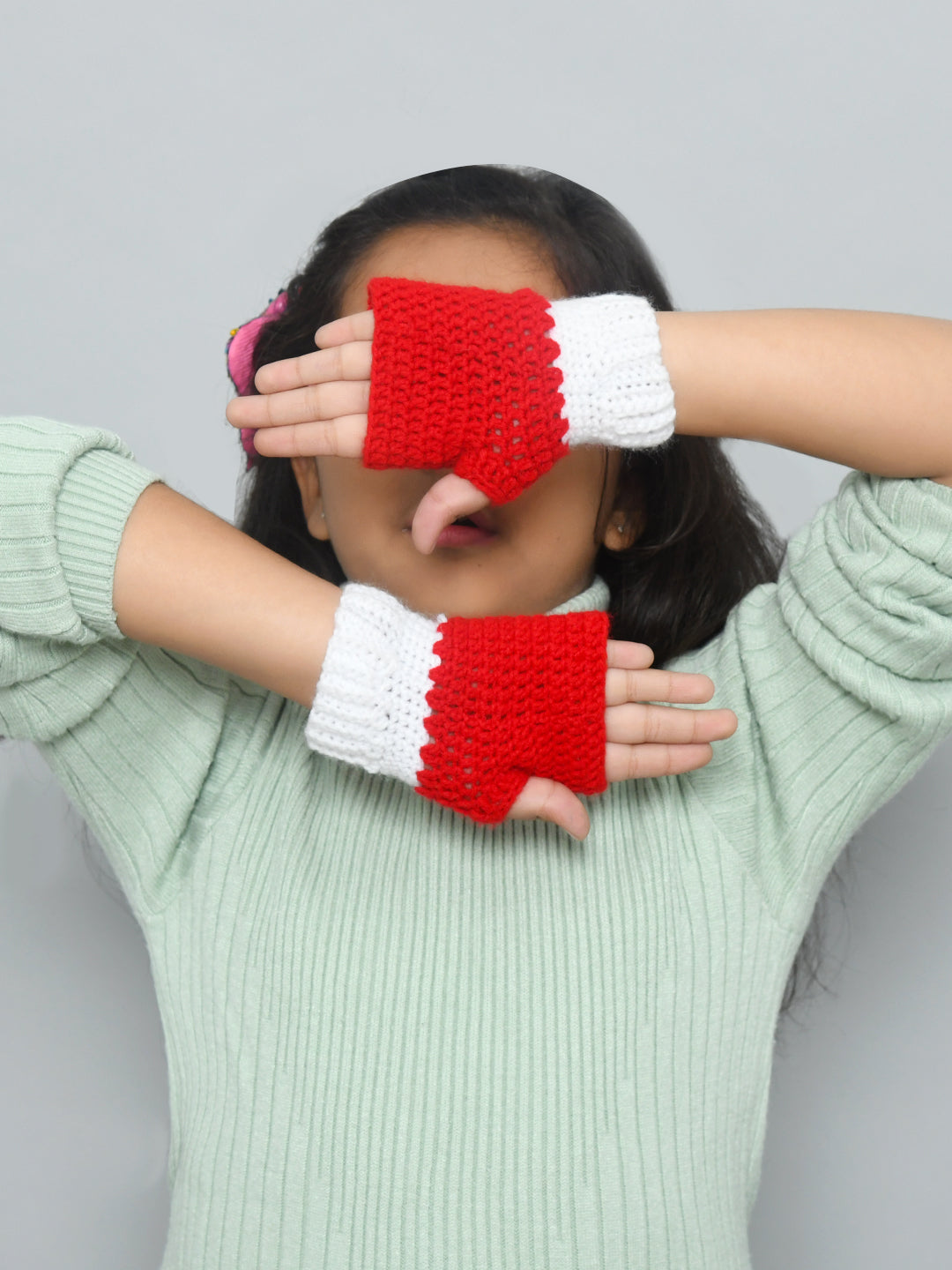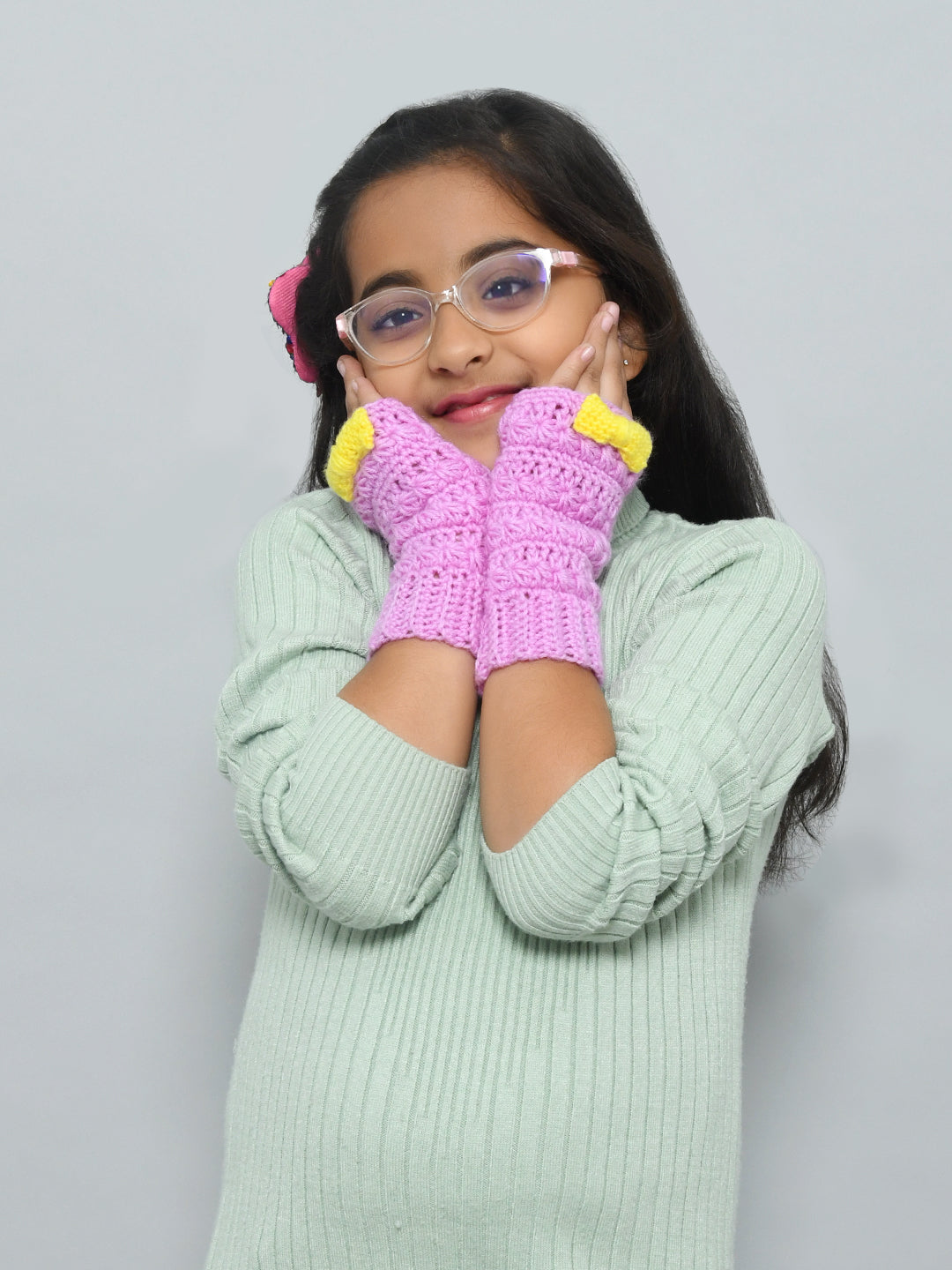 Mauve Handmade Woollen Fingerless Gloves For Girls