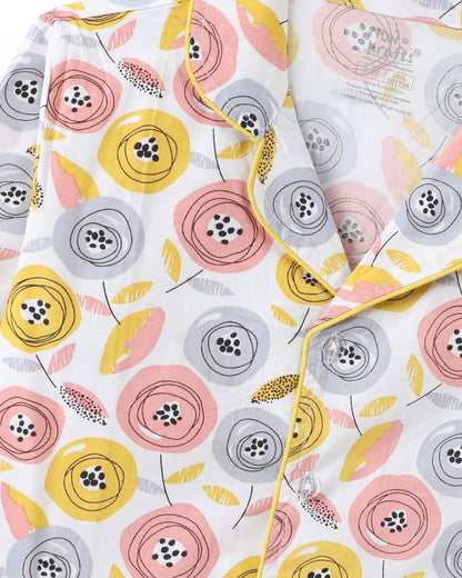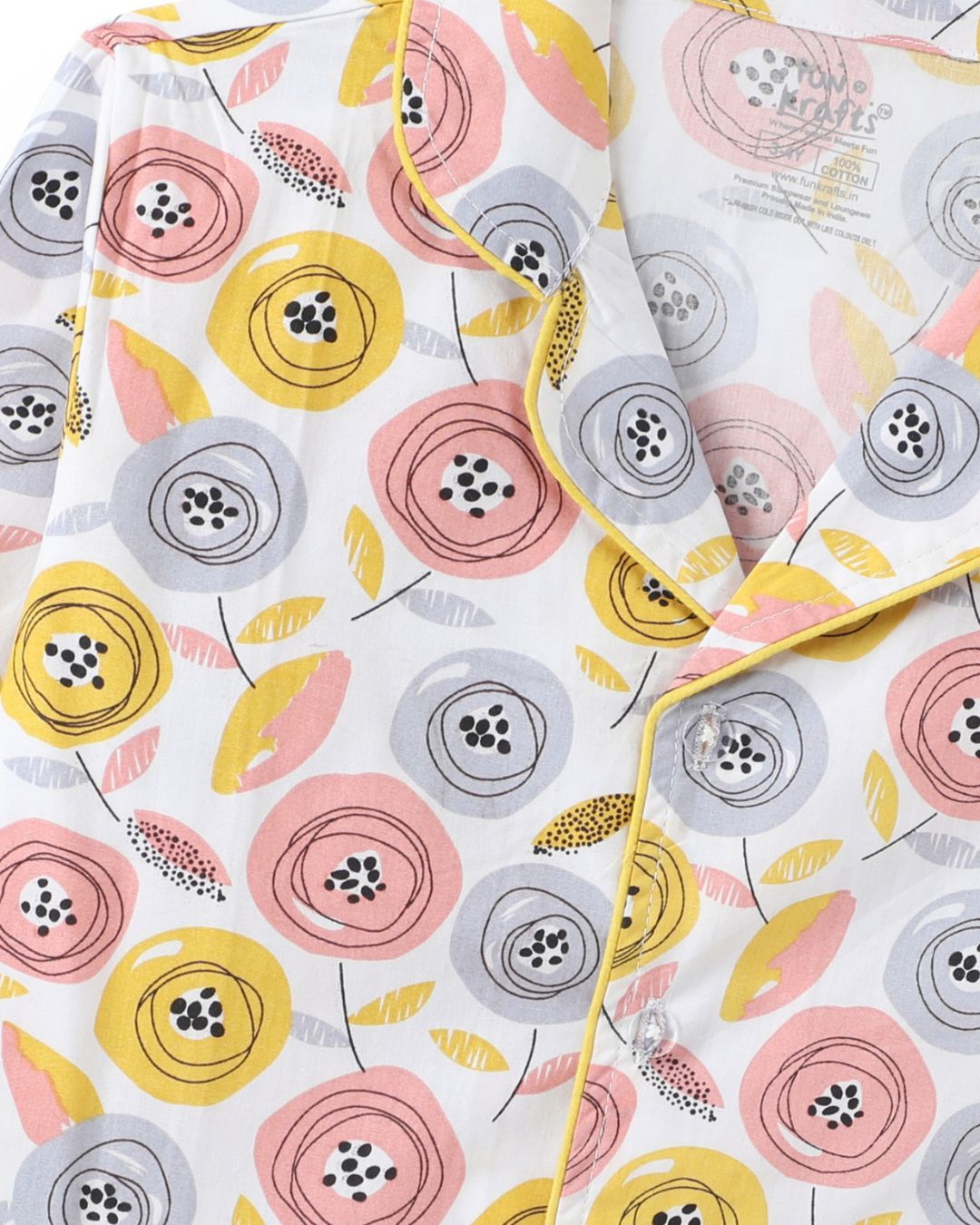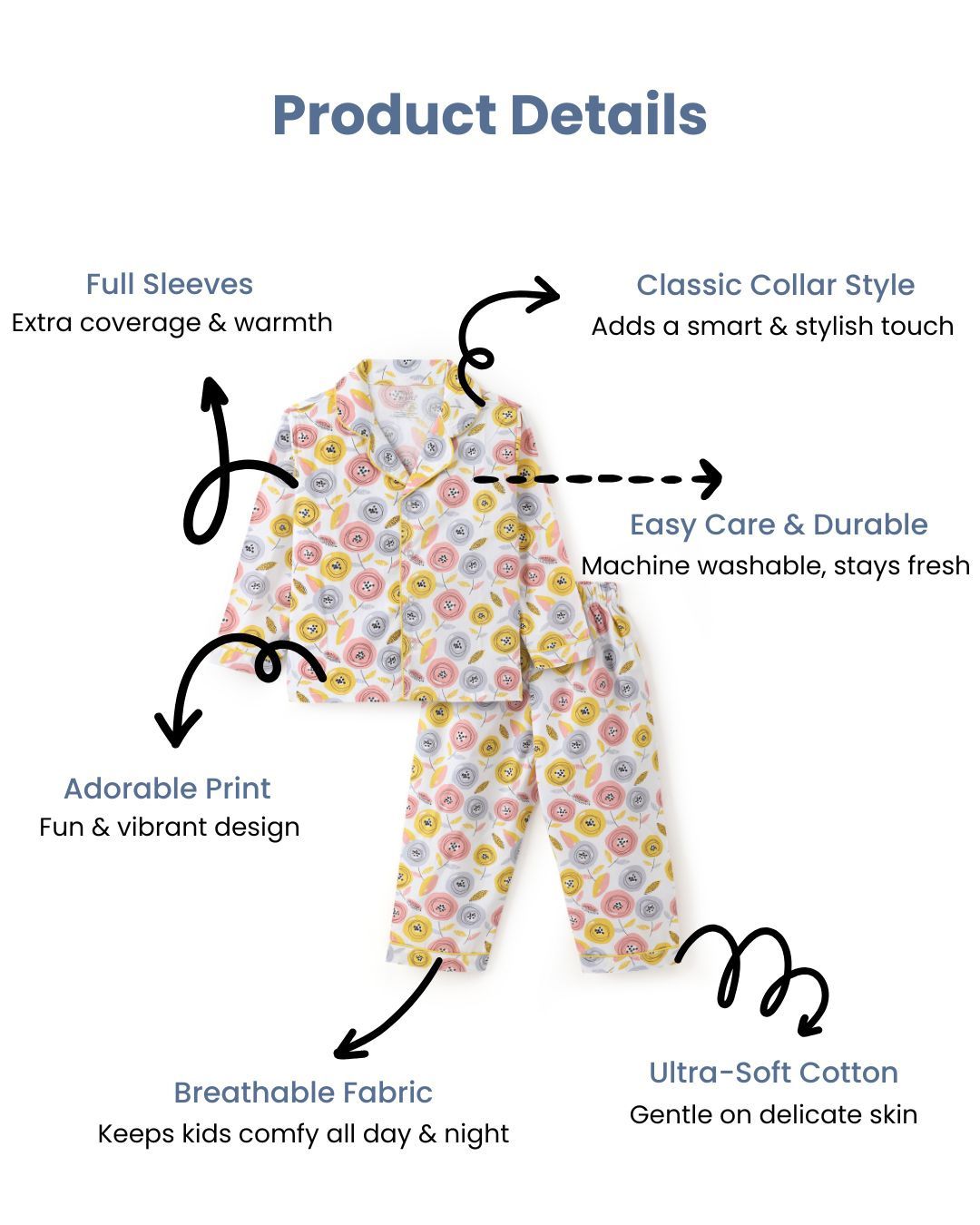 Multicolor Premium Cotton Full Sleeves Floral Printed Collar Style Nightsuit for Boys & Girls