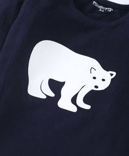 Navy Blue Bear Printed Cotton Loungewear for Kids