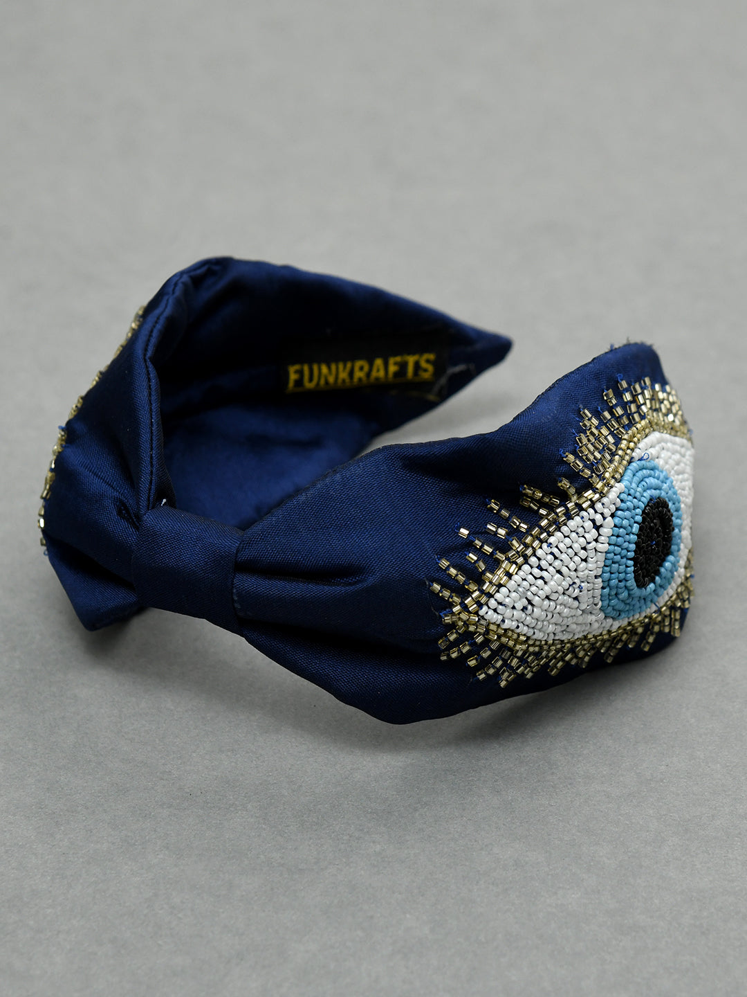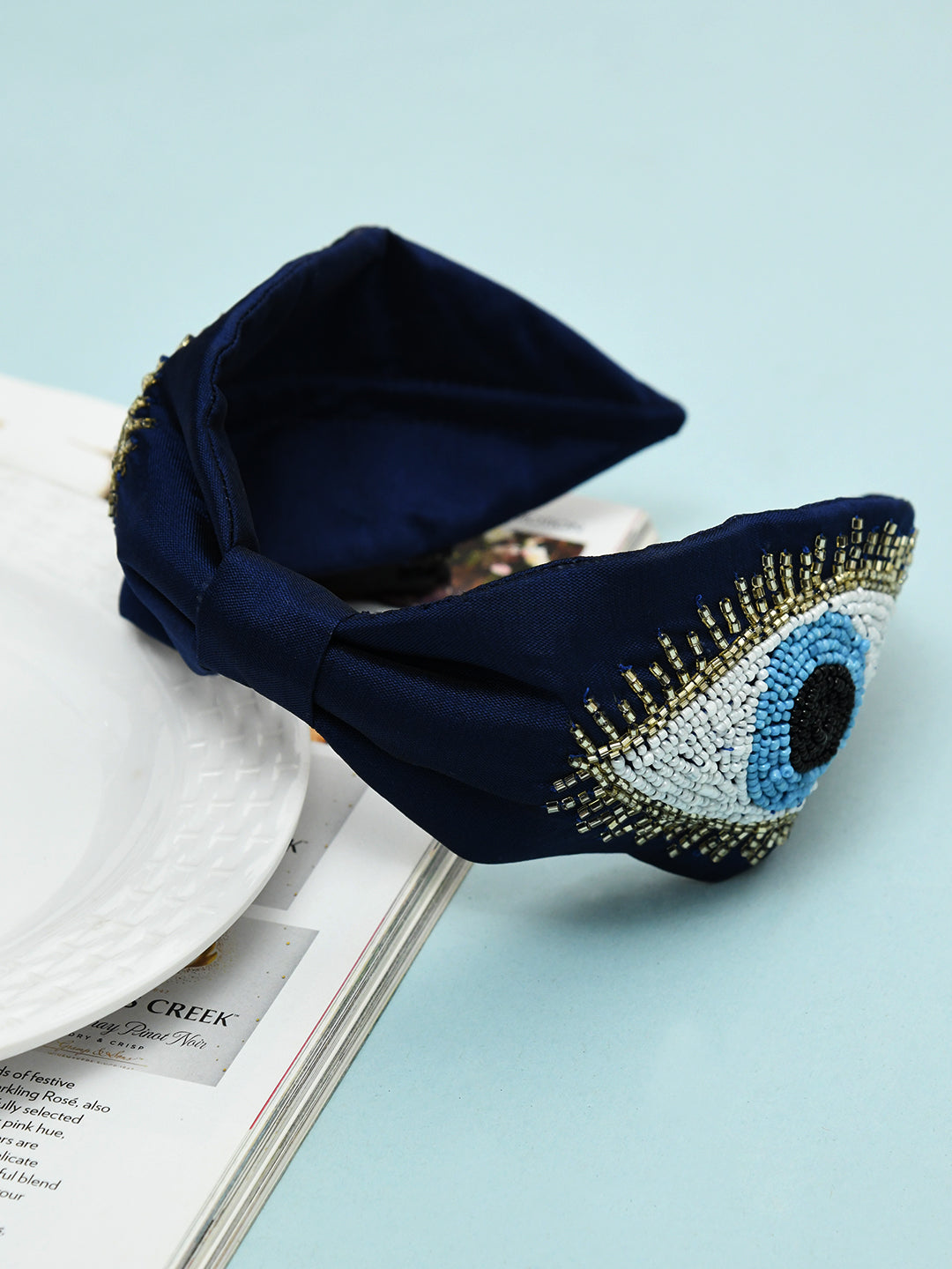 Navy Blue Free Size Evil Eye Beaded Embroidered Hair Band