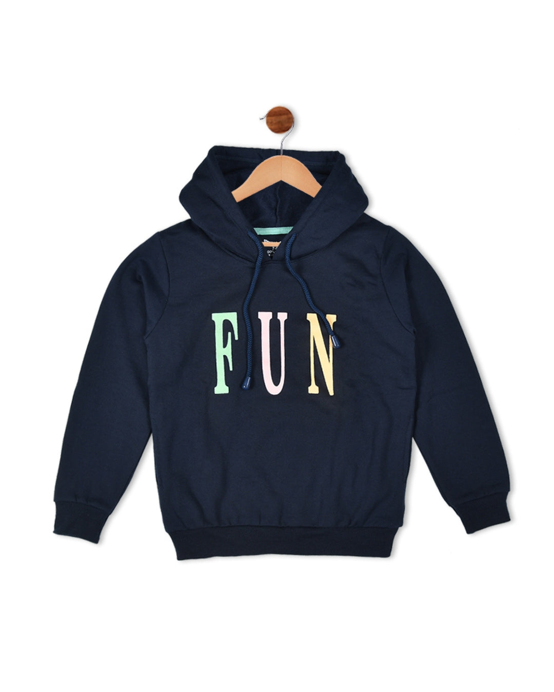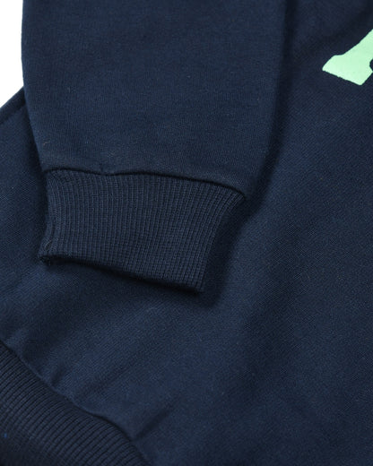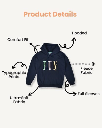 Navy Blue Cotton Fleece Unisex Kids Hooded Sweatshirt