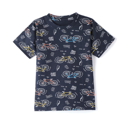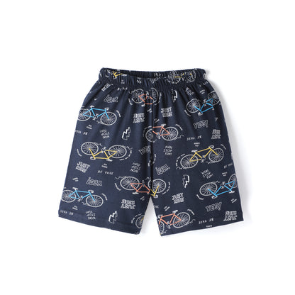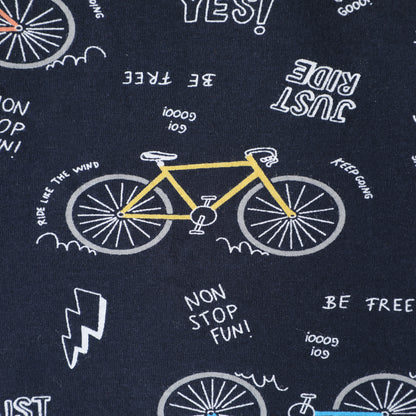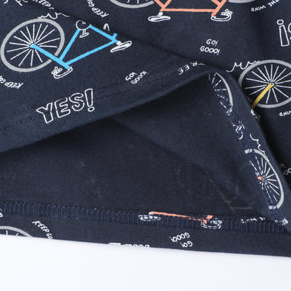 Navy Blue Kids Pure Cotton Half Sleeves Bicycle Printed T-shirt & Shorts Set Set
