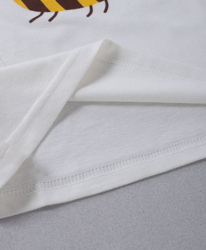 Off White & Brown Honey Bee Printed Unisex Cotton Loungewear for Kids